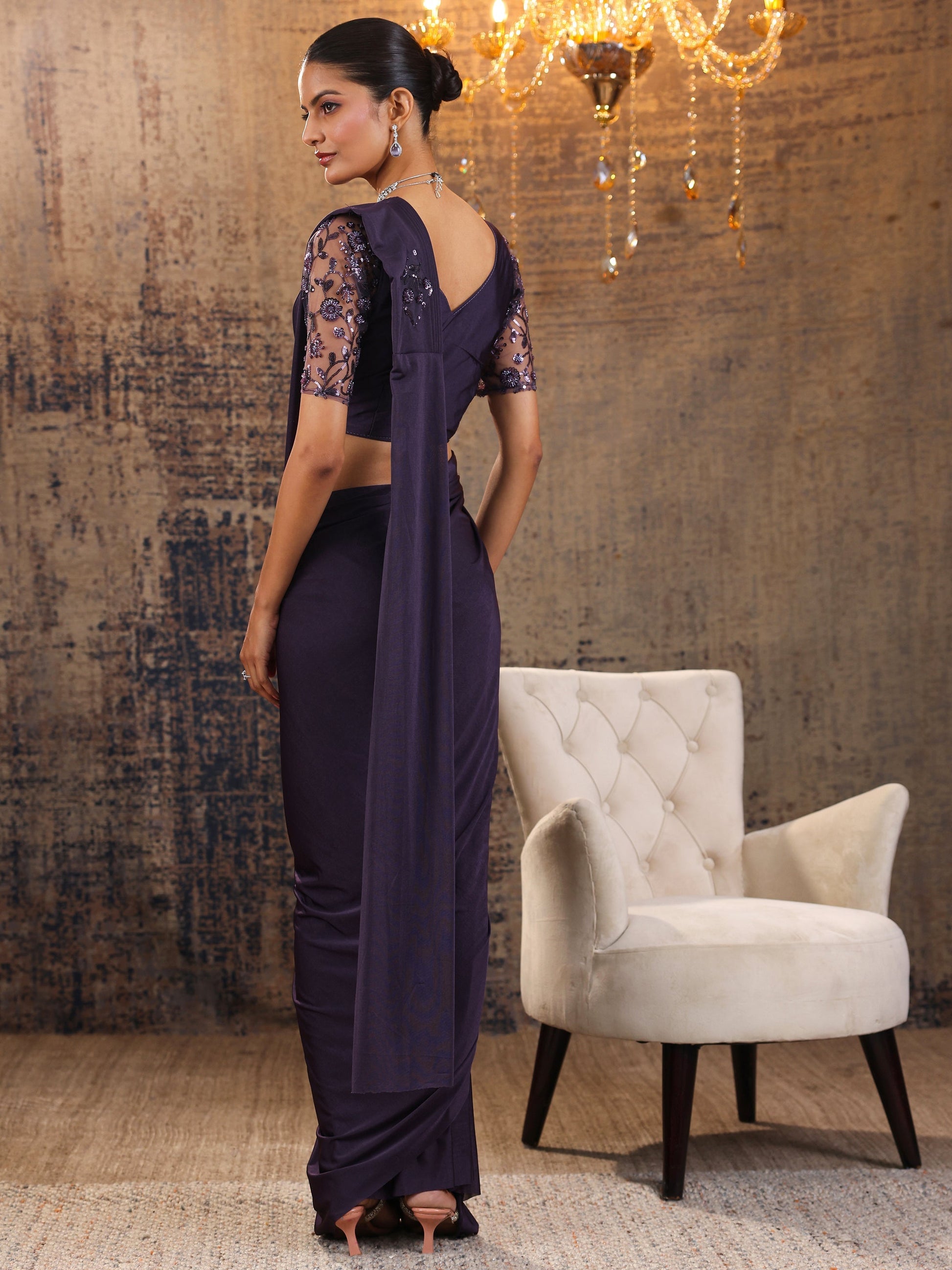 Our Purple Printed Nylon Saree Features Captivating Solid Print. Complemented With A stitched Blouse. This Charming Saree Is Perfect For Festive Wear