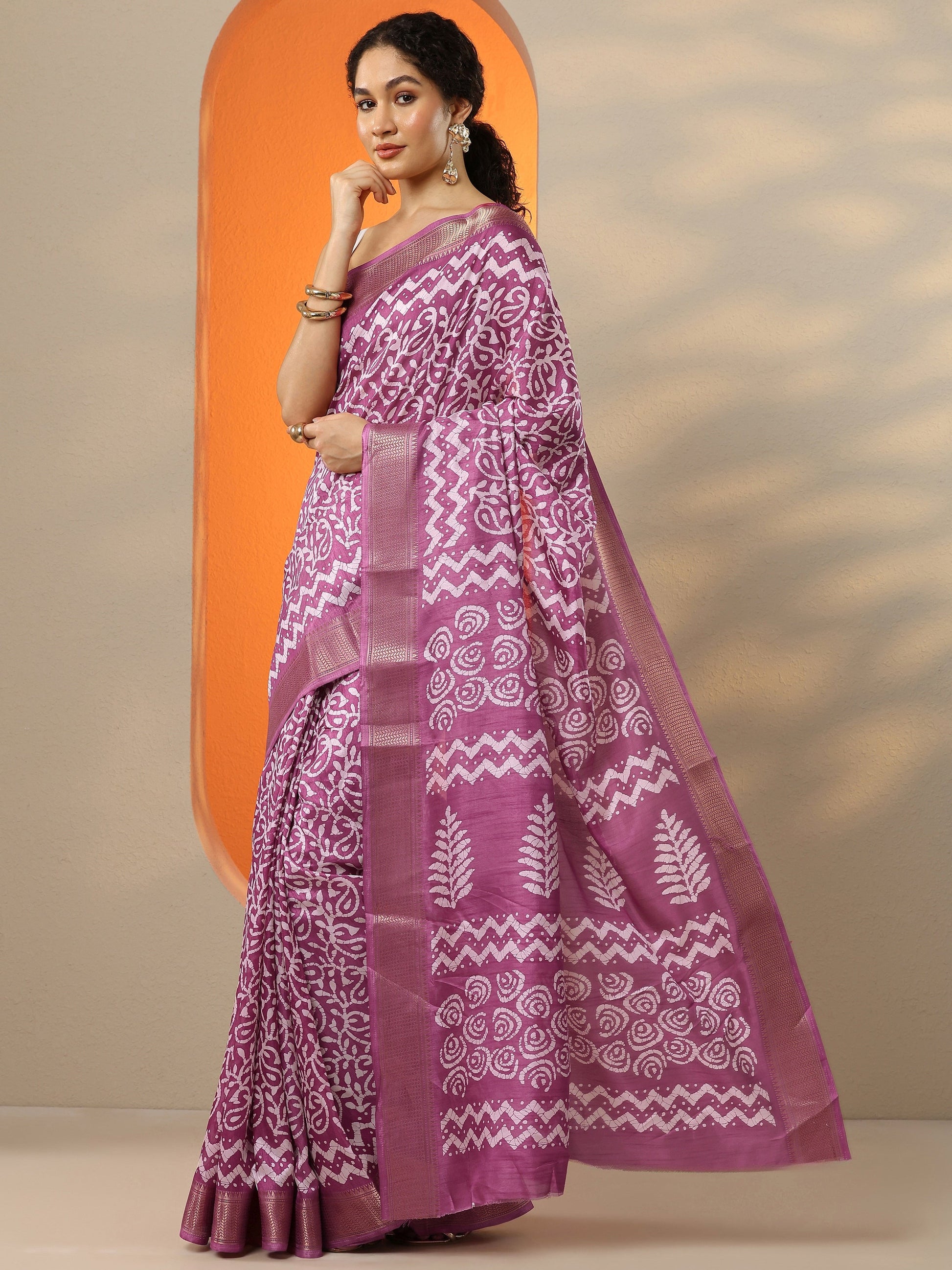 Magenta Batik Printed Silk Blend Saree With Unstitched Blouse Piece