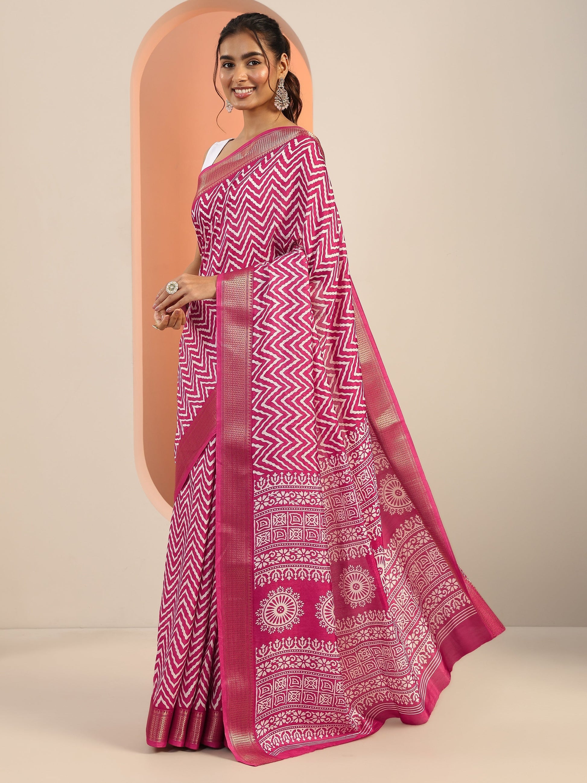 Magenta Printed Silk Blend Saree With Unstitched Blouse Piece