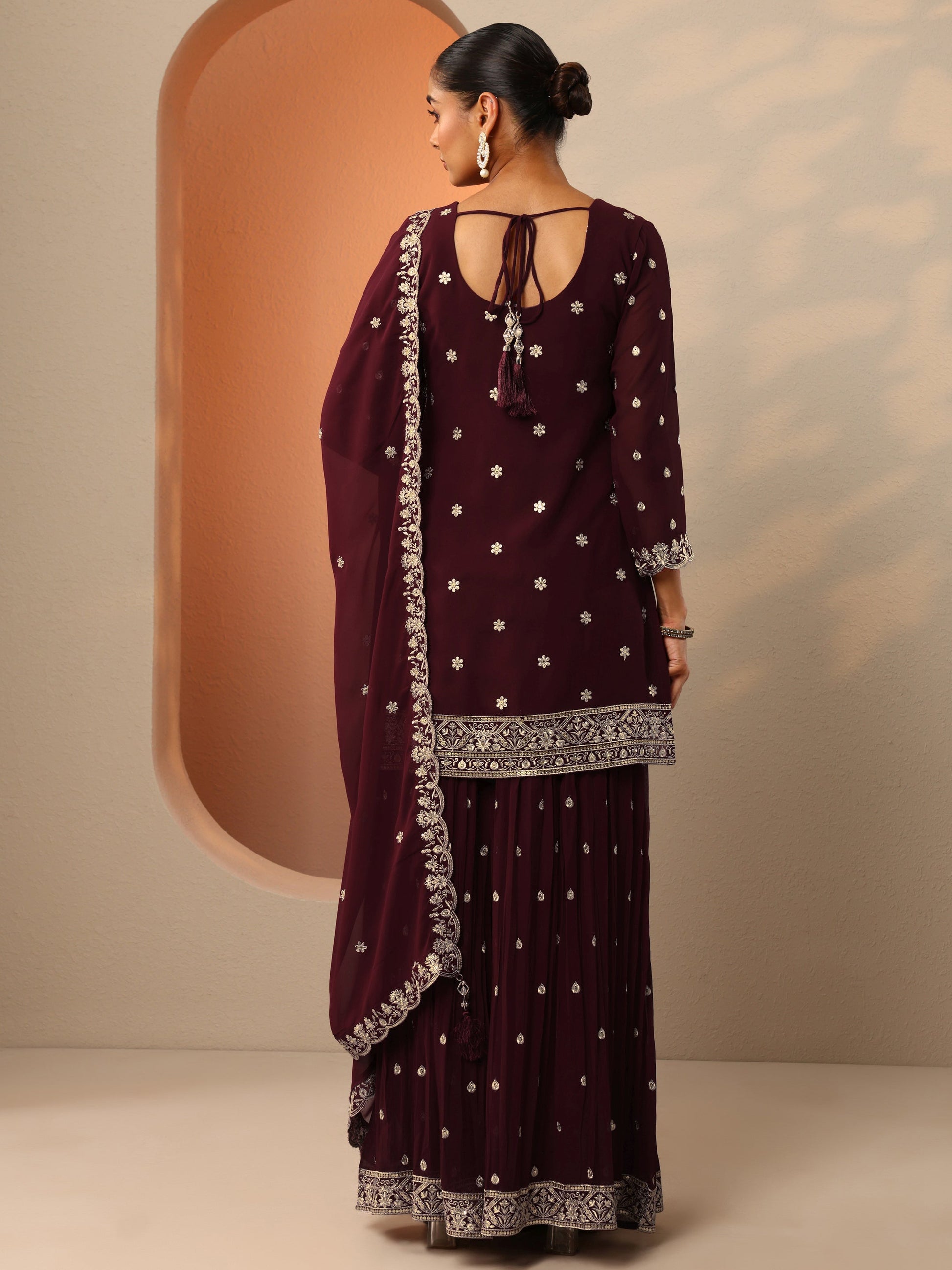 Maharani Maroon Embroidered Georgette Straight Suit Set With Dupatta