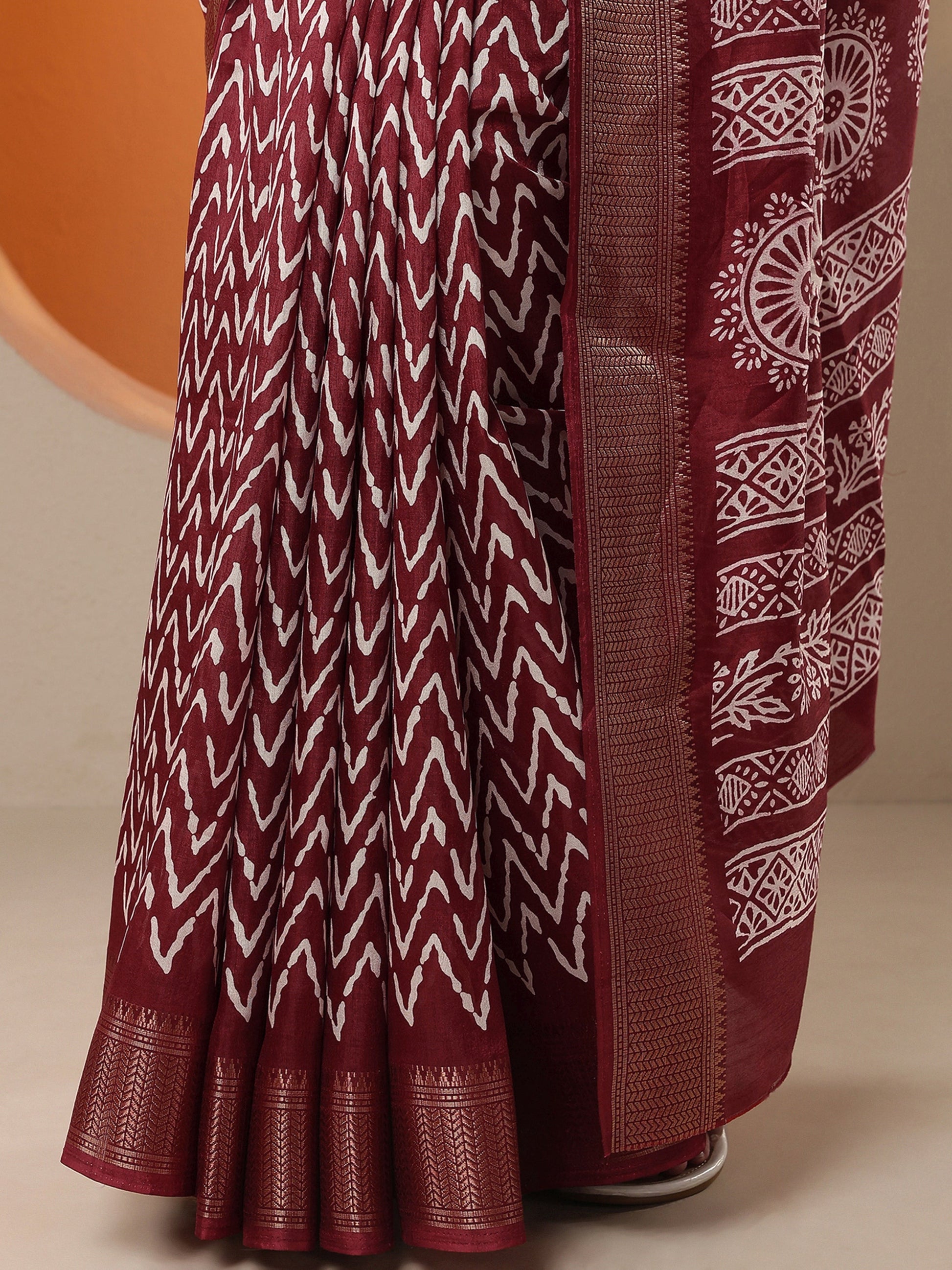 Maroon Leheriya Printed Silk Blend Saree With Unstitched Blouse Piece