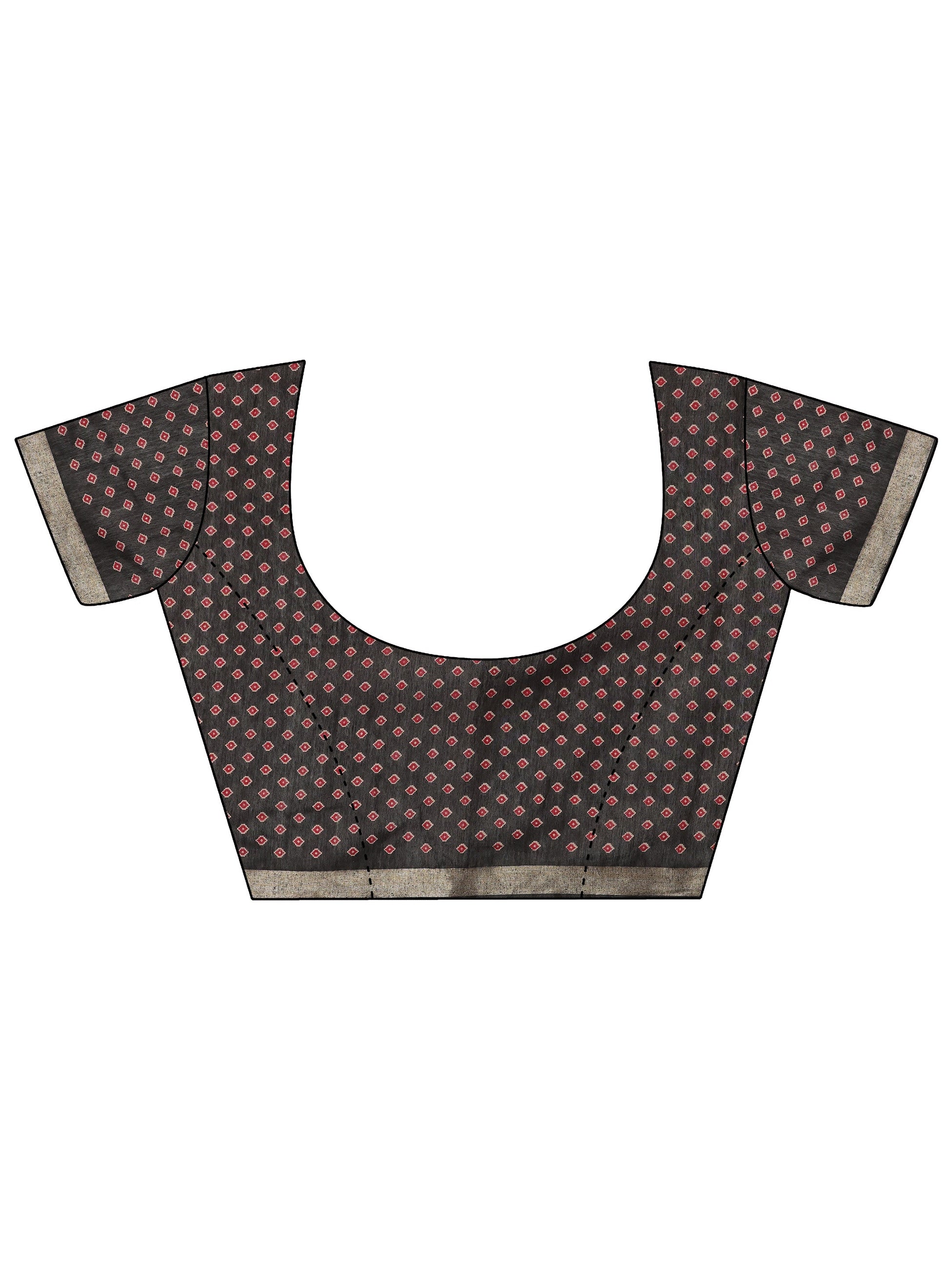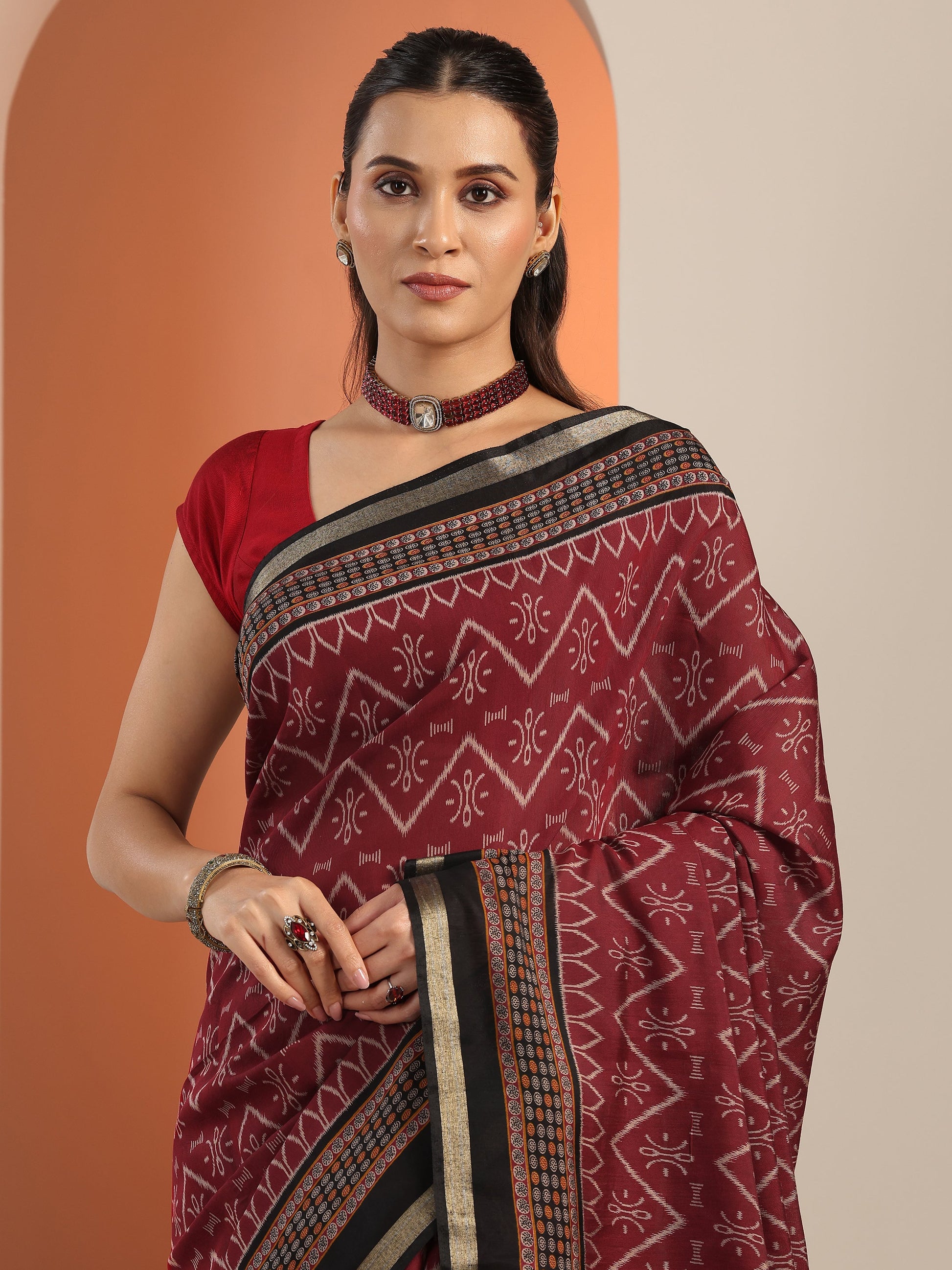 Maroon Printed Cotton Blend Saree With Unstitched Blouse Piece