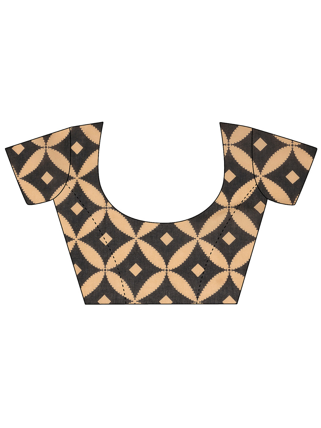 Our red and black printed cotton saree features captivating Ajrakh print. Complemented with a blouse piece. This charming saree is perfect for casual occasions.