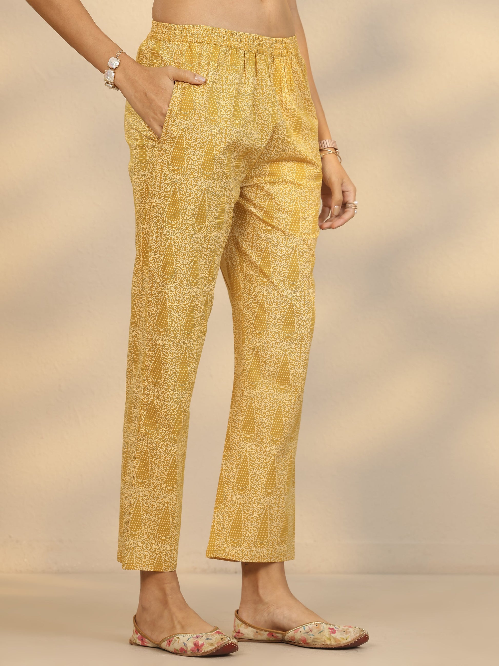 Our 3-piece Red and Yellow Cotton Straight-Fit Kurta Set features a Round Neckline, Regular Sleeves, and statement Yoke. Complemented with Straight Pants with a Partially Elasticated waistband and 2 pockets, and a Printed Dupatta. Adorned with Ethnic Motif Printed, this style is perfect for Festive occasions.