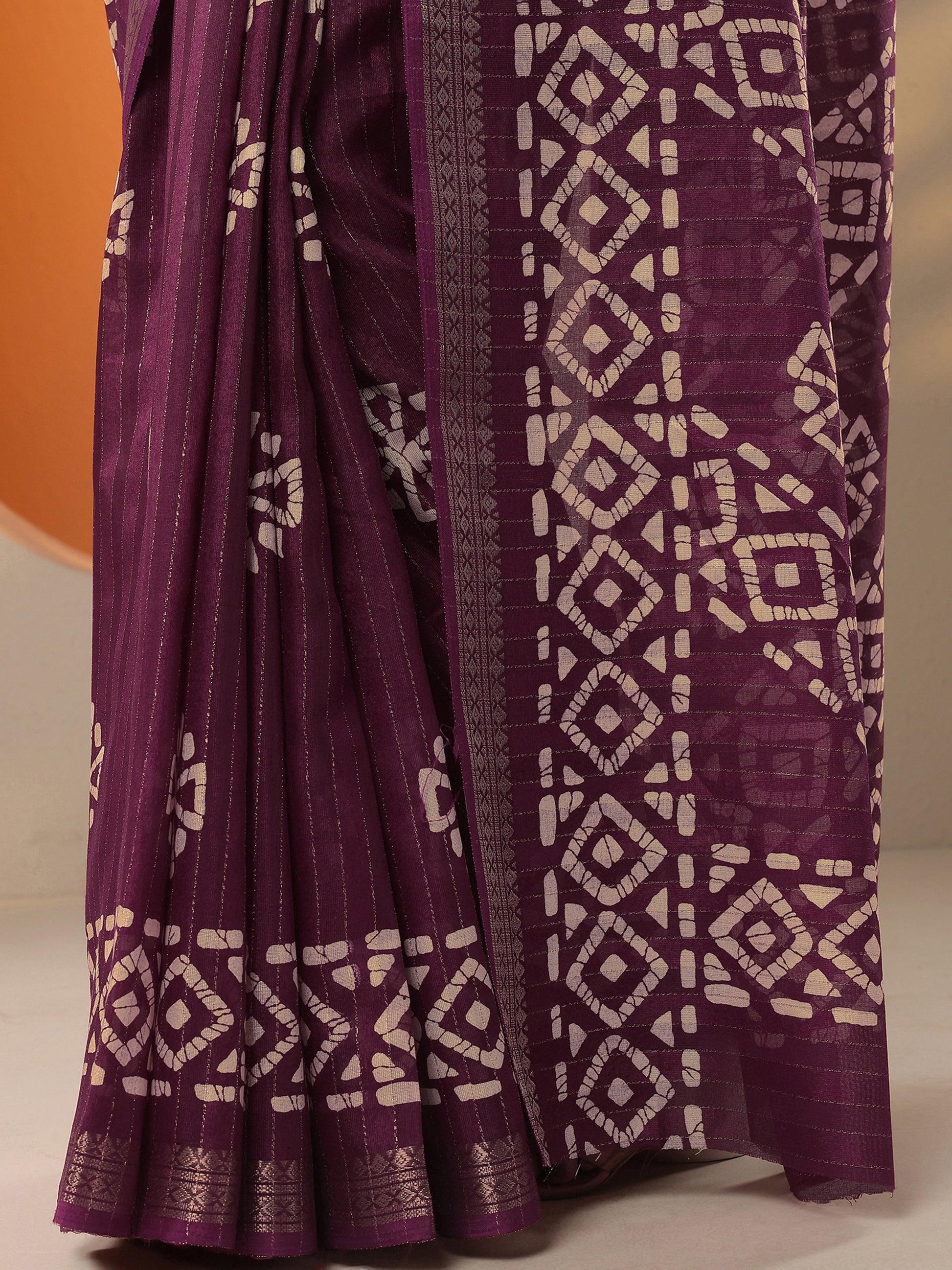 Maroon Printed Silk Blend Saree With Unstitched Blouse Piece