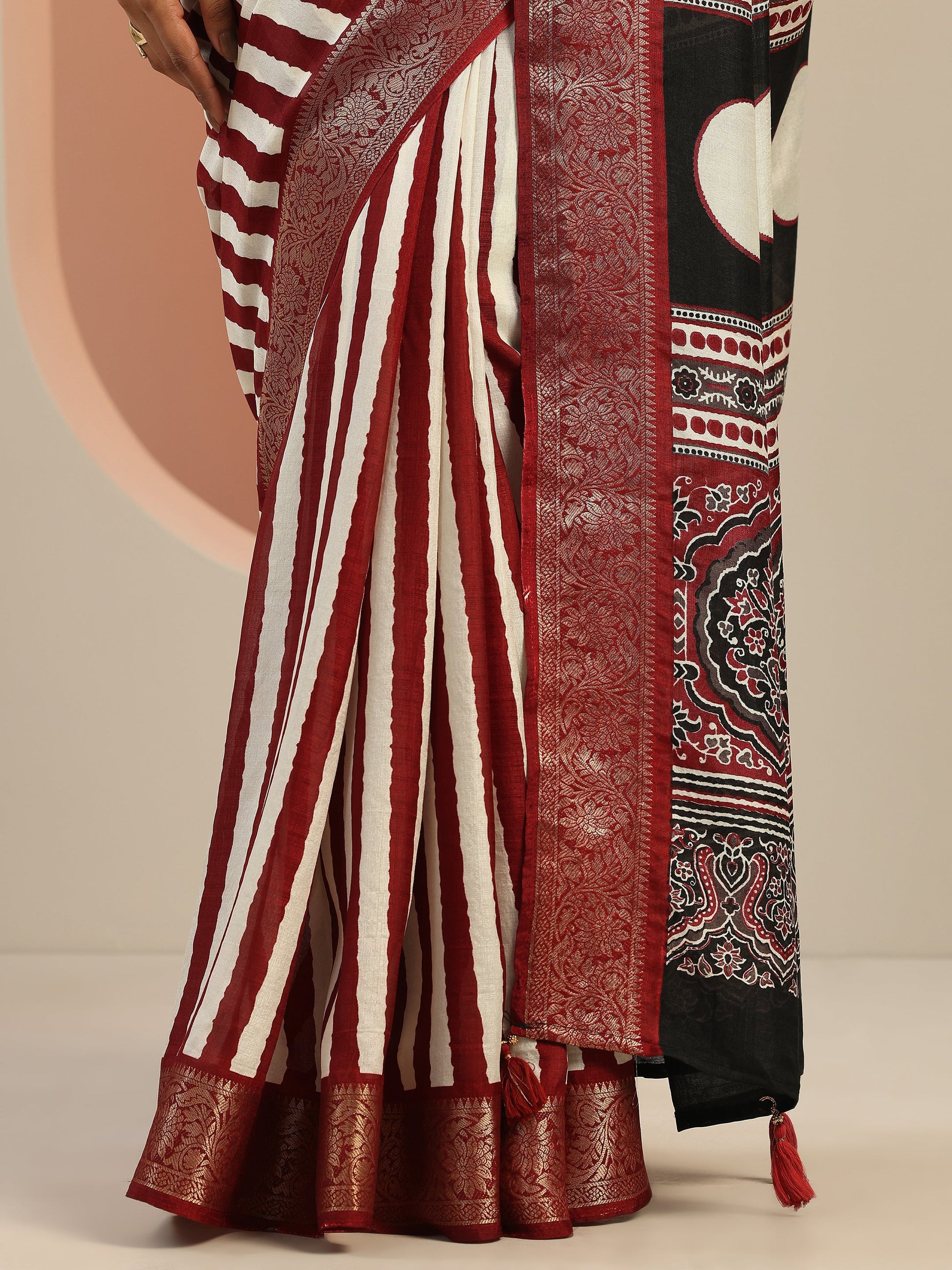 Maroon Printed Silk Blend Saree With Unstitched Blouse Piece