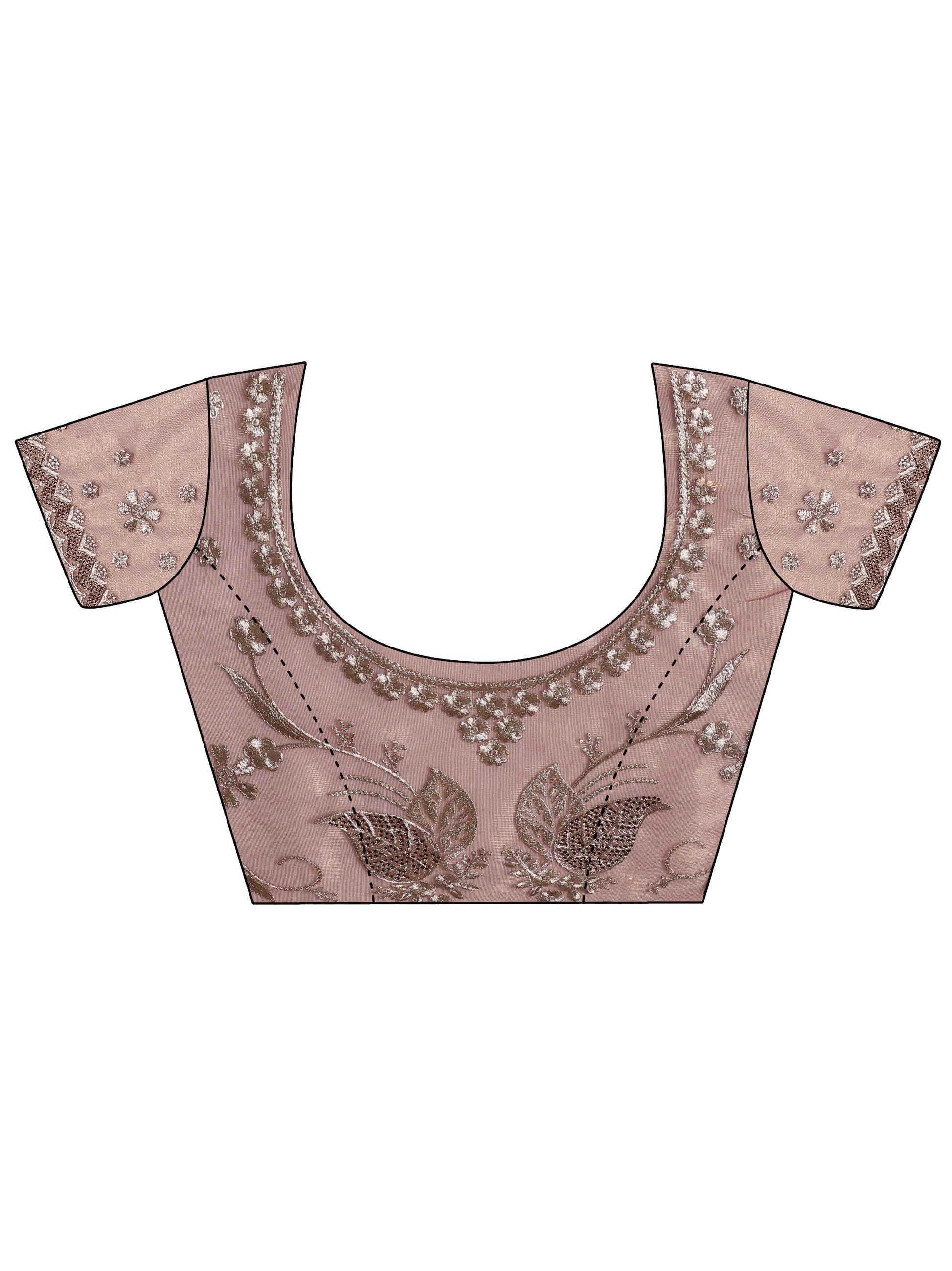 Mauve Embroidered Nylon Saree With Unstitched Blouse Piece