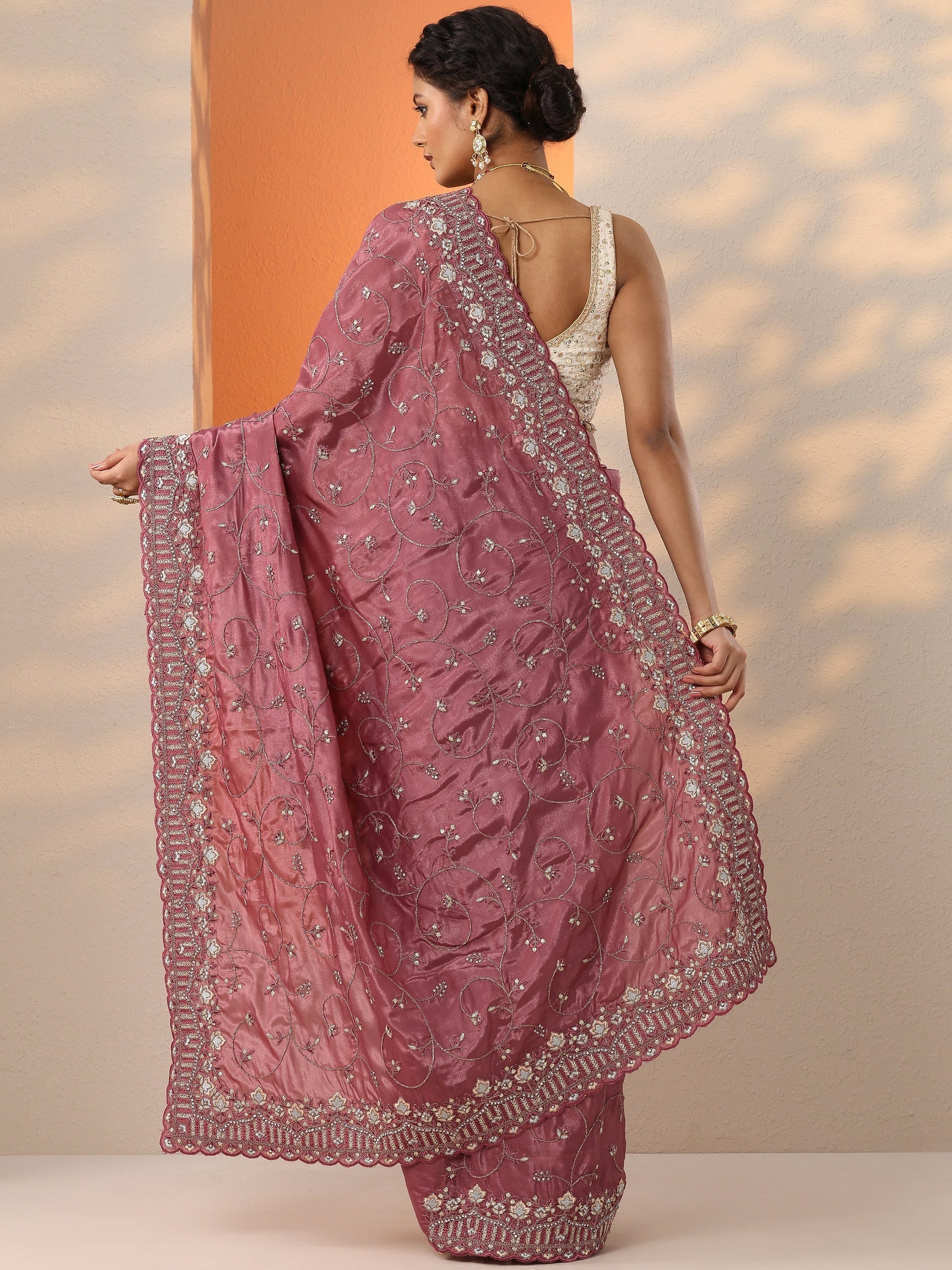 Mauve Embroidered Organza Saree With Unstitched Blouse Piece