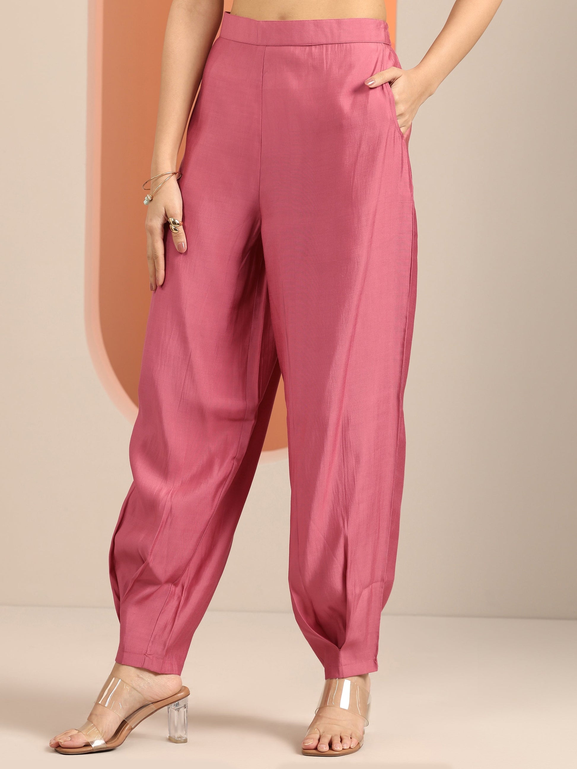 Our 3-piece mauve printed cotton Anarkali suit set features a flared kurta with a keyhole neckline and comfortable full sleeves. Complemented with Churidar salwar with a elasticated waistband and a dupatta. Highlighted with floral prints, this style is ideal for casual outings.