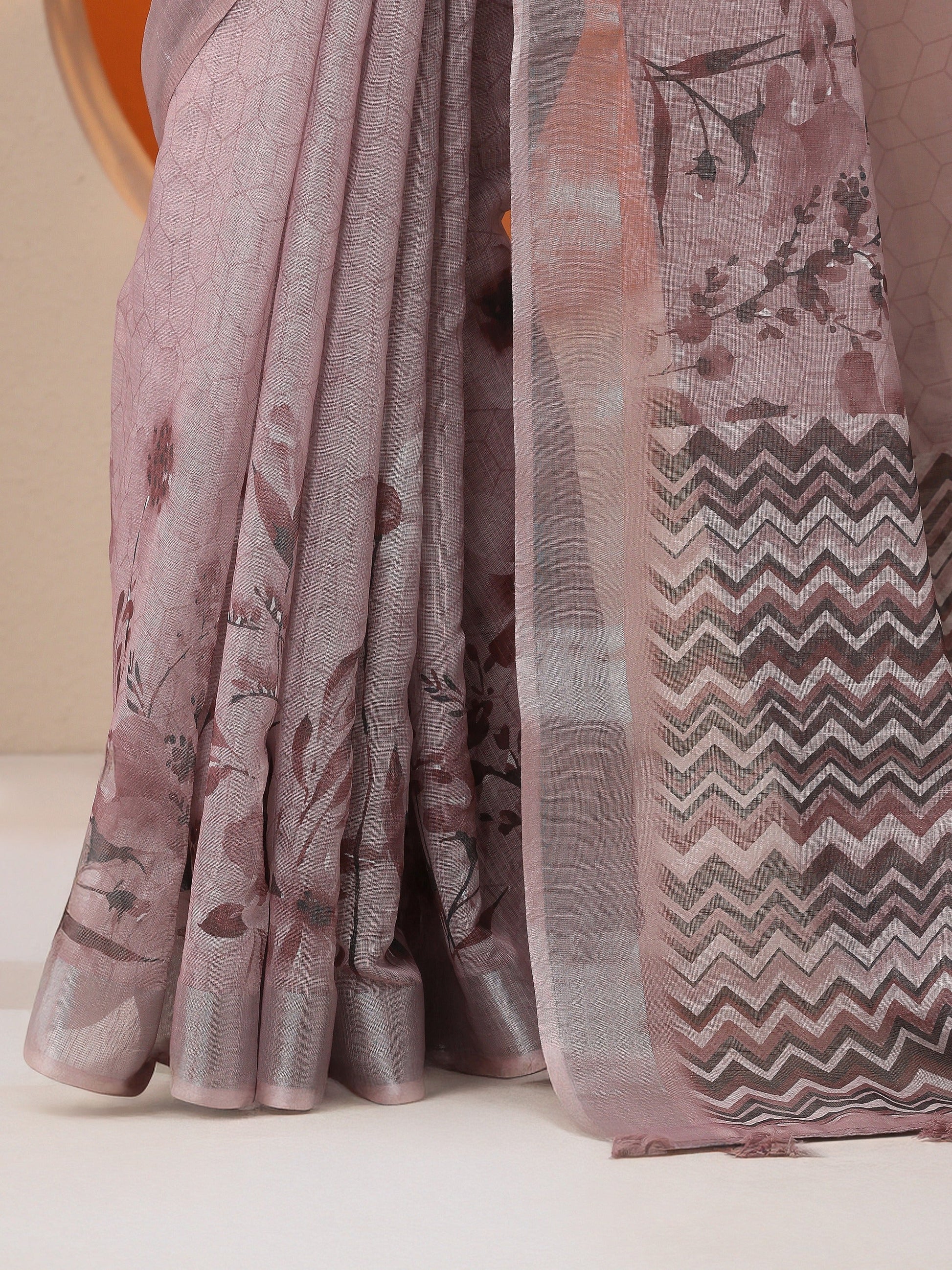 Our Mauve Printed Cotton Blend Saree Features Captivating Floral Print. Complemented With An Unstitched Blouse Piece. This Charming Saree Is Perfect For Casual Wear