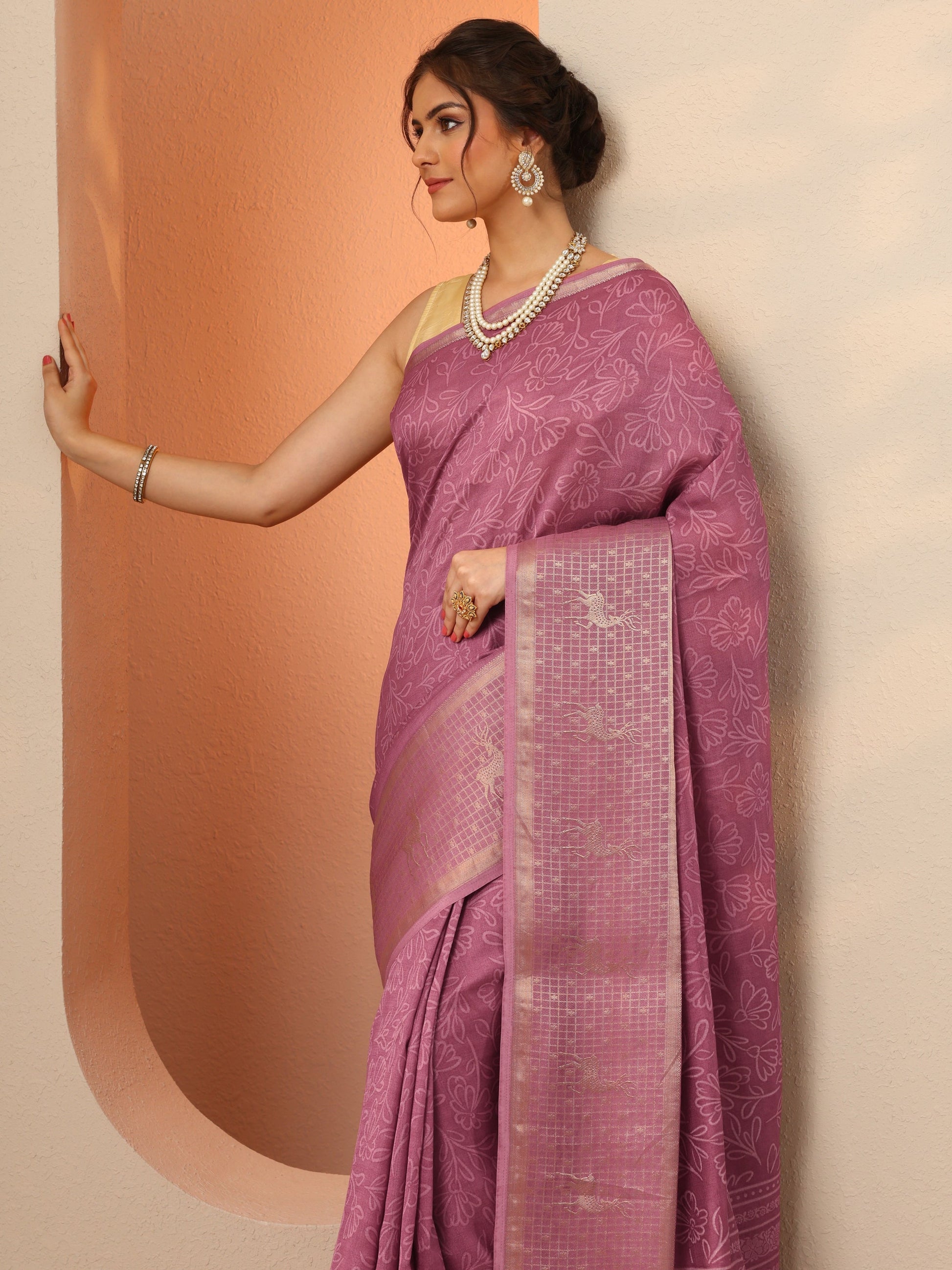 Mauve Printed Georgette Saree With Unstitched Blouse Piece