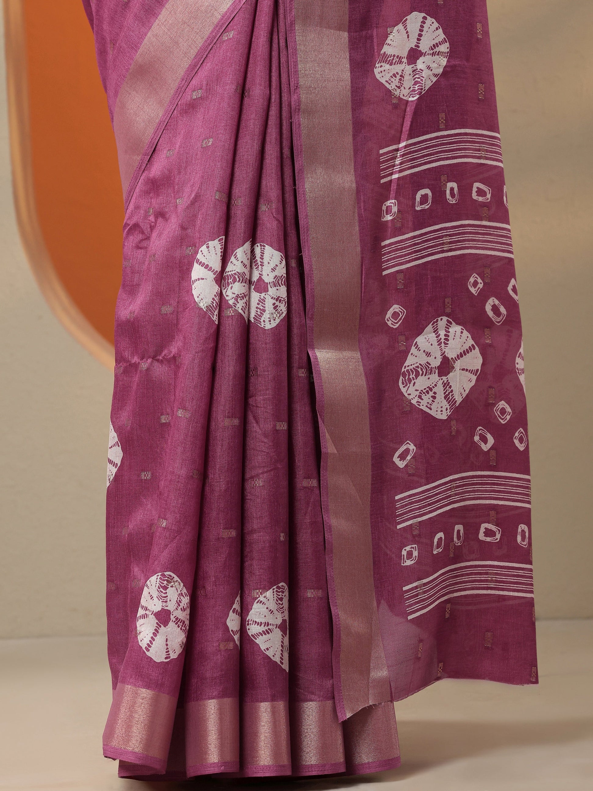 Mauve Printed Silk Blend Saree With Unstitched Blouse Piece