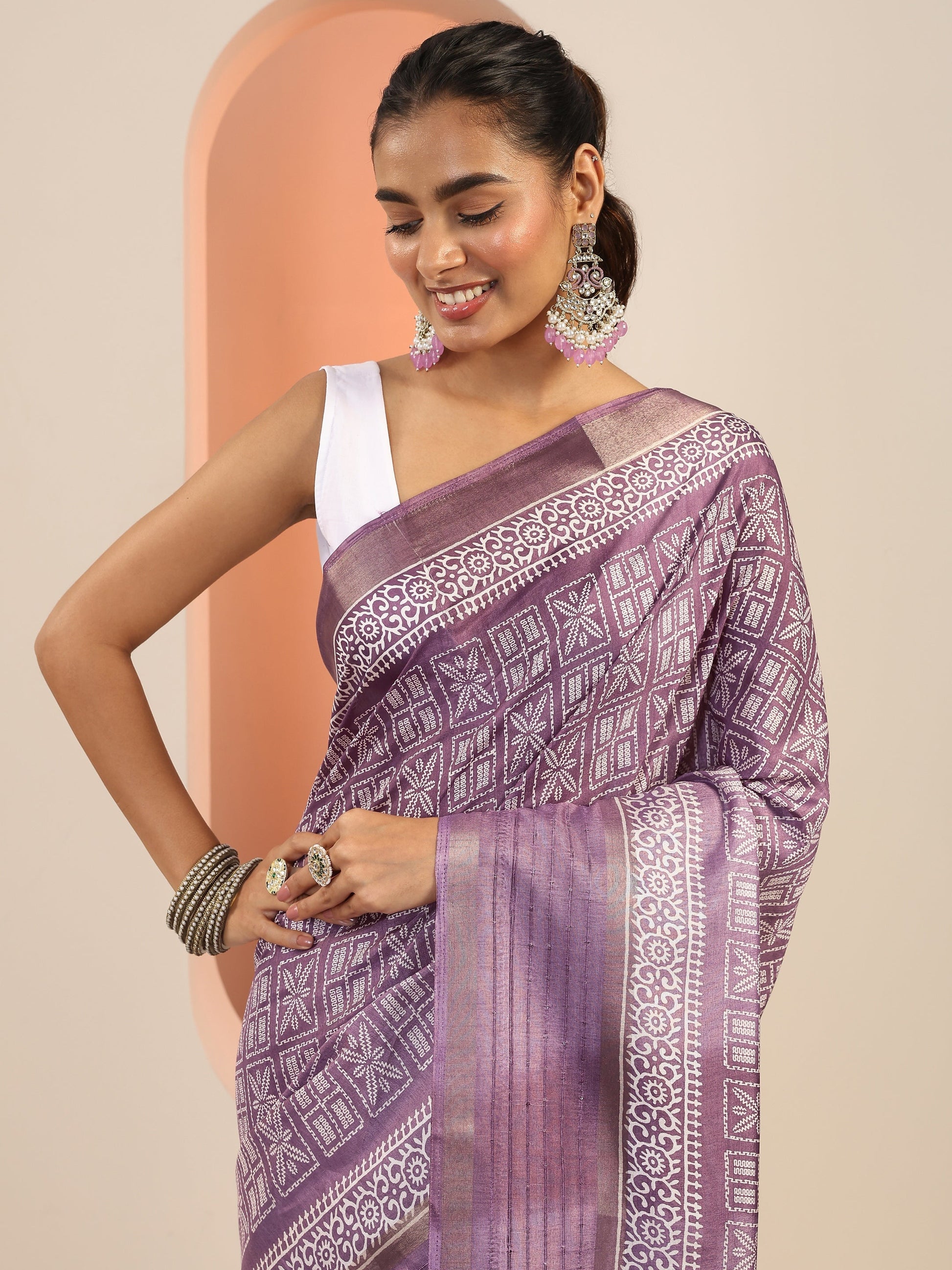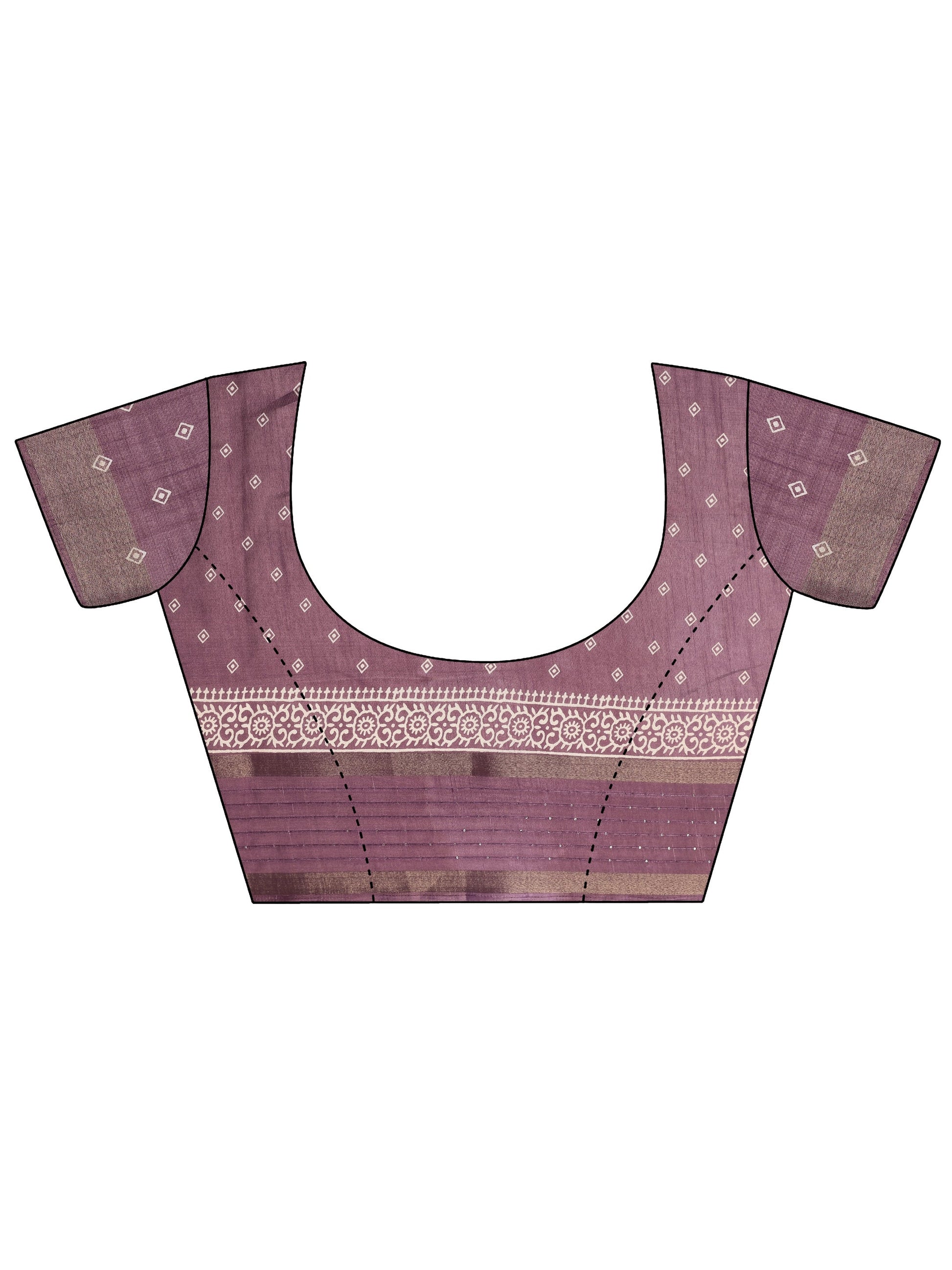 Mauve Printed Silk Blend Saree With Unstitched Blouse Piece