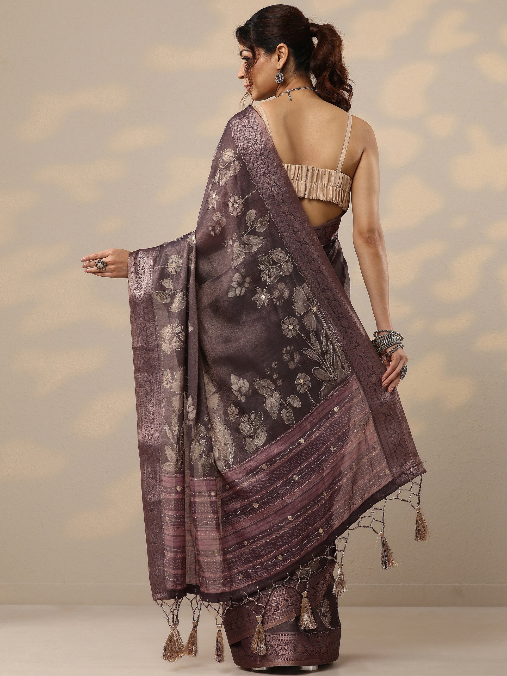 Mauve Printed Silk Blend Sarees With Unstitched Blouse Piece
