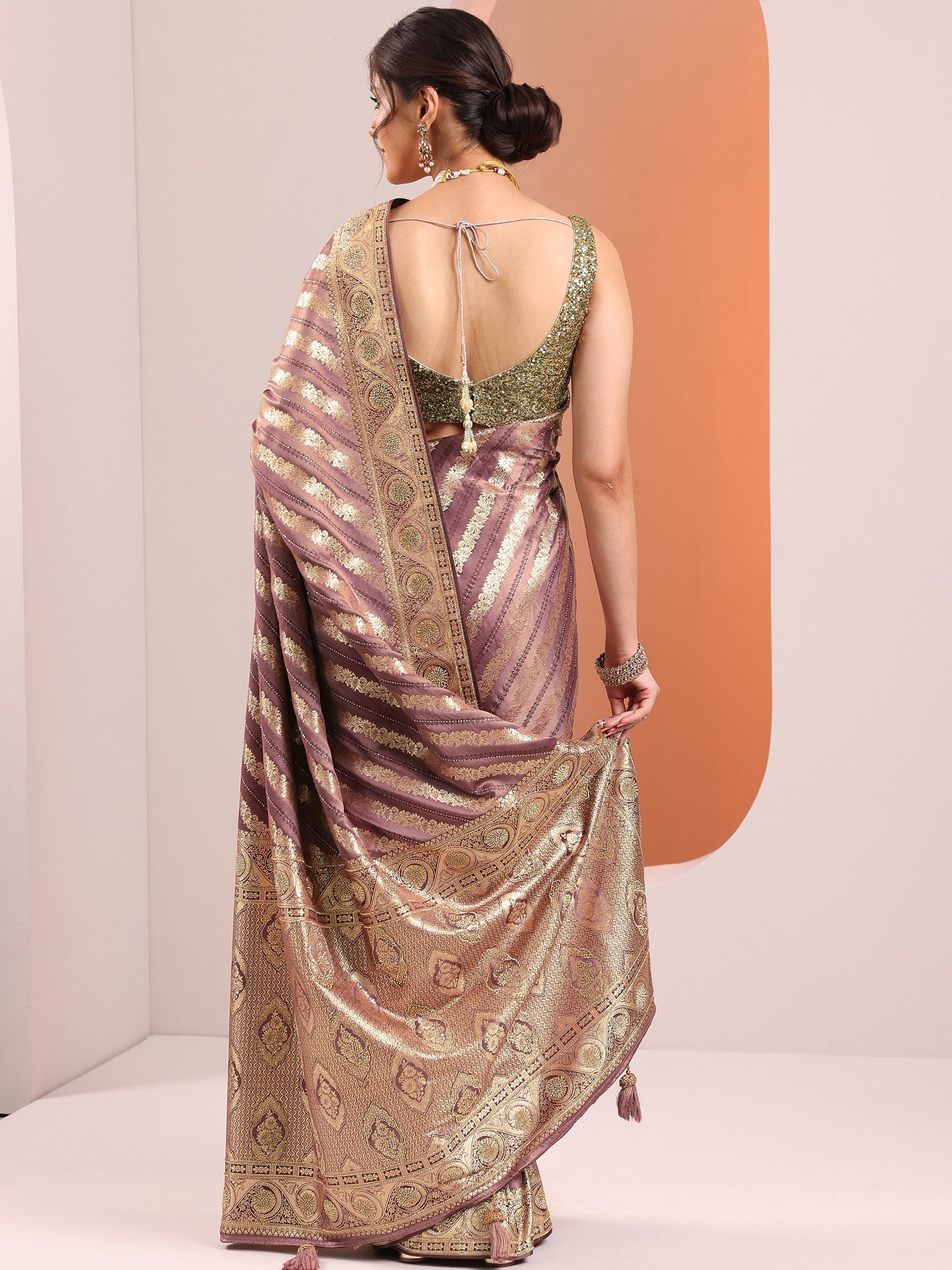 Mauve Woven Design Banarasi Silk Blend Saree With Unstitched Blouse Piece
