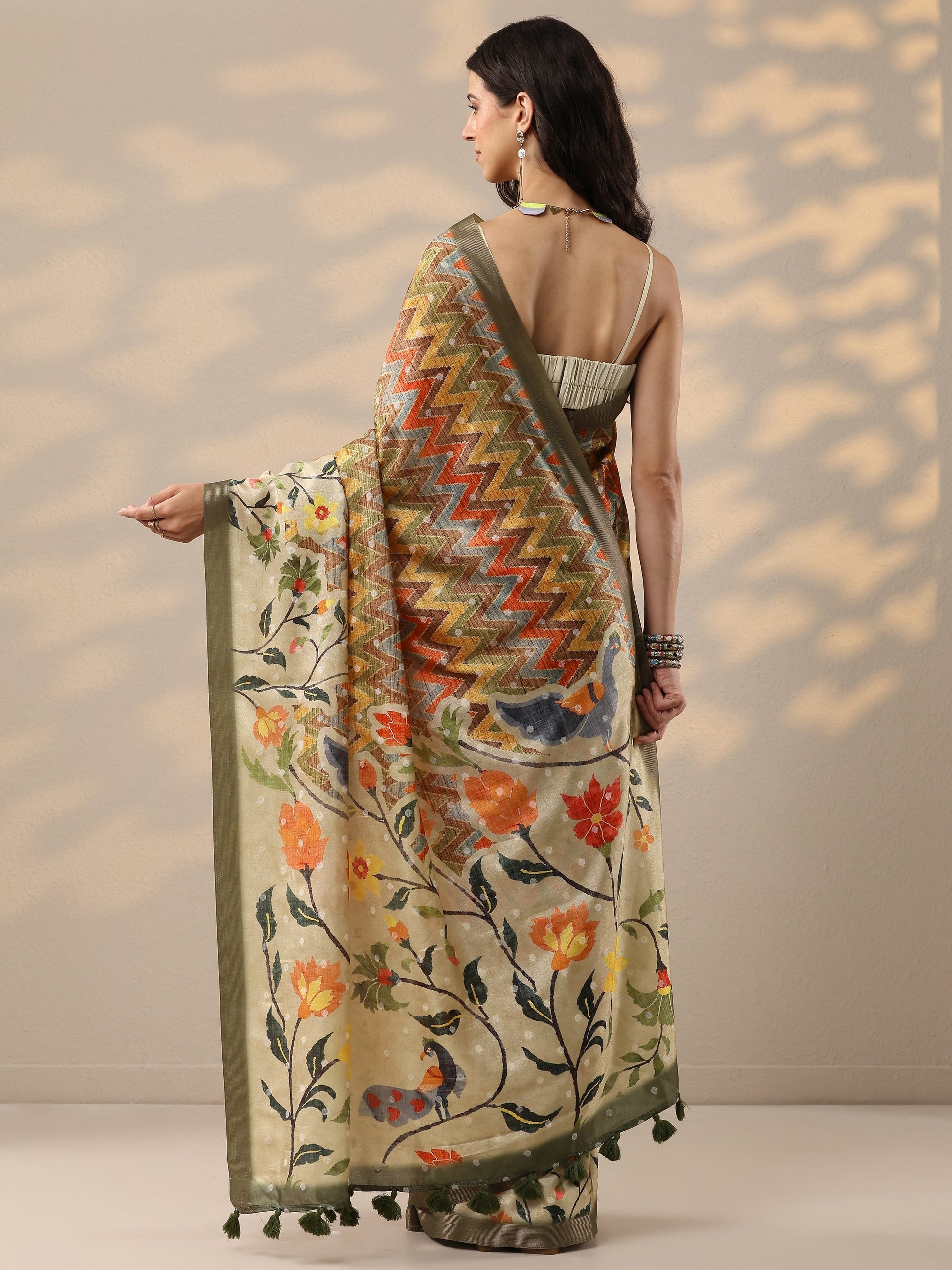 Multi Leheriya Printed Silk Blend Saree With Unstitched Blouse Piece