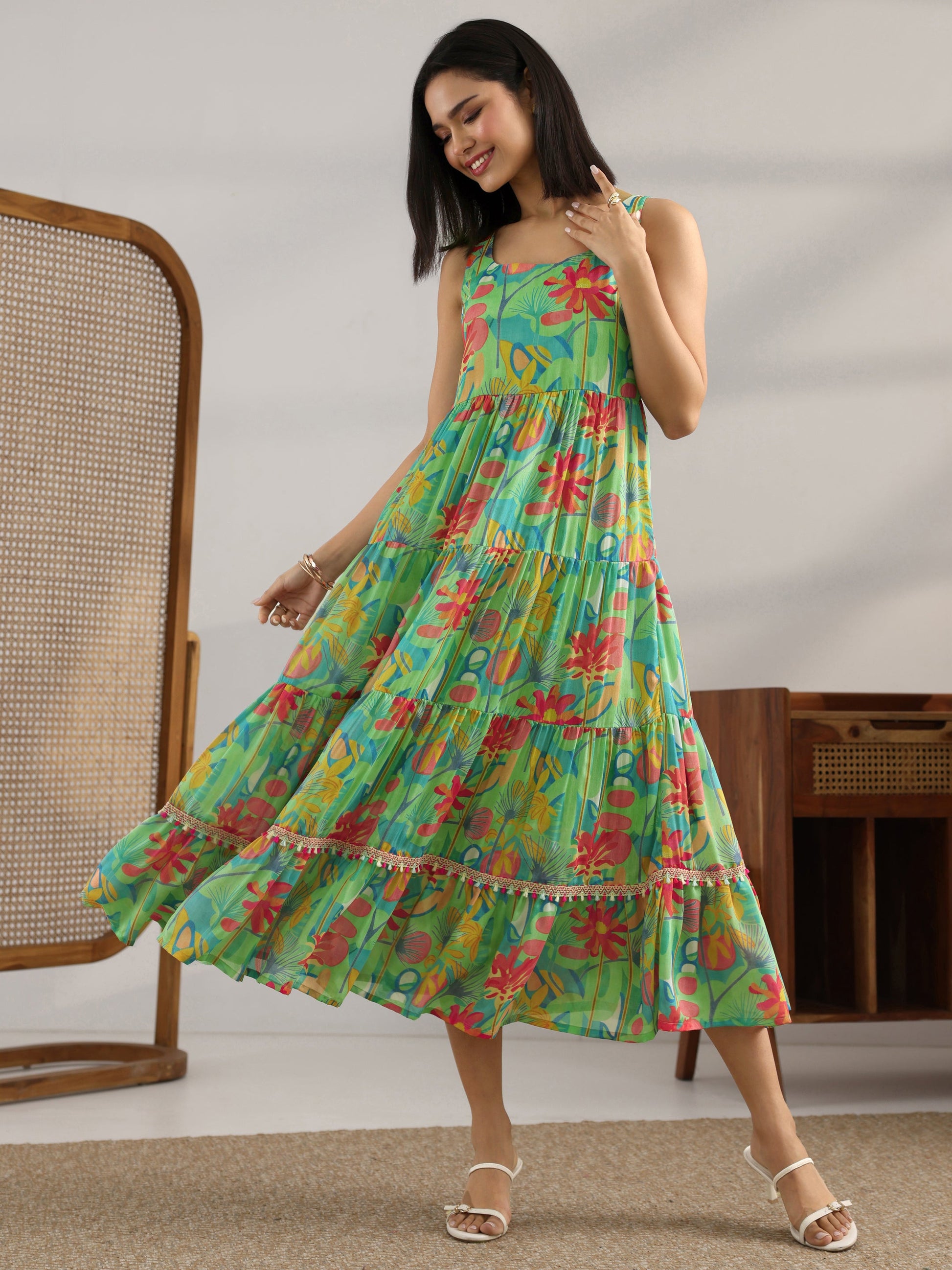 Multi Printed Chiffon Fit And Flare One Piece Dress