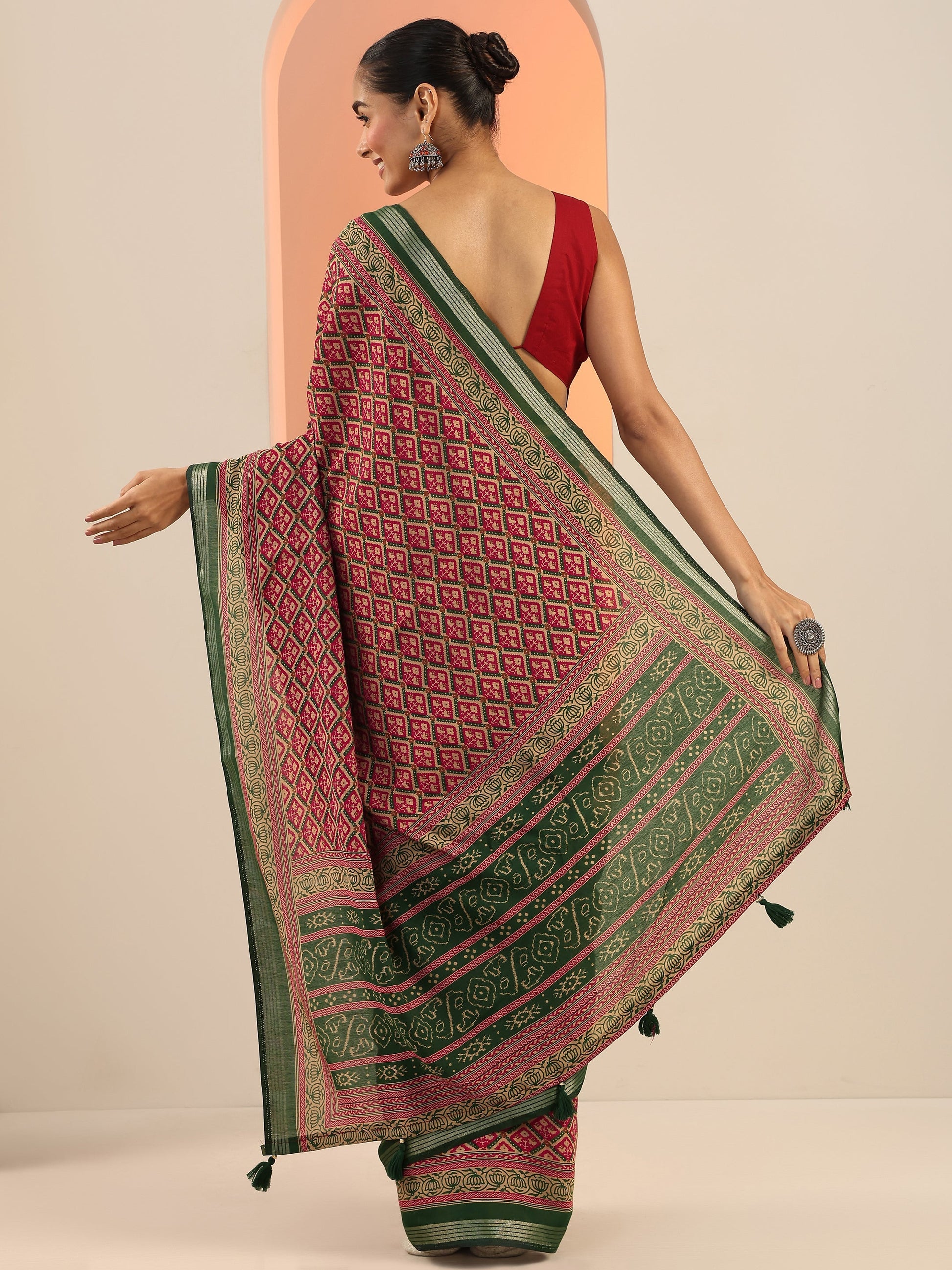Our Red Printed Cotton Blend Saree Features Captivating Ethnic Motif Printed Design. Complemented With An Unstitched Blouse Piece. This Charming Saree Is Perfect For Festive Wear