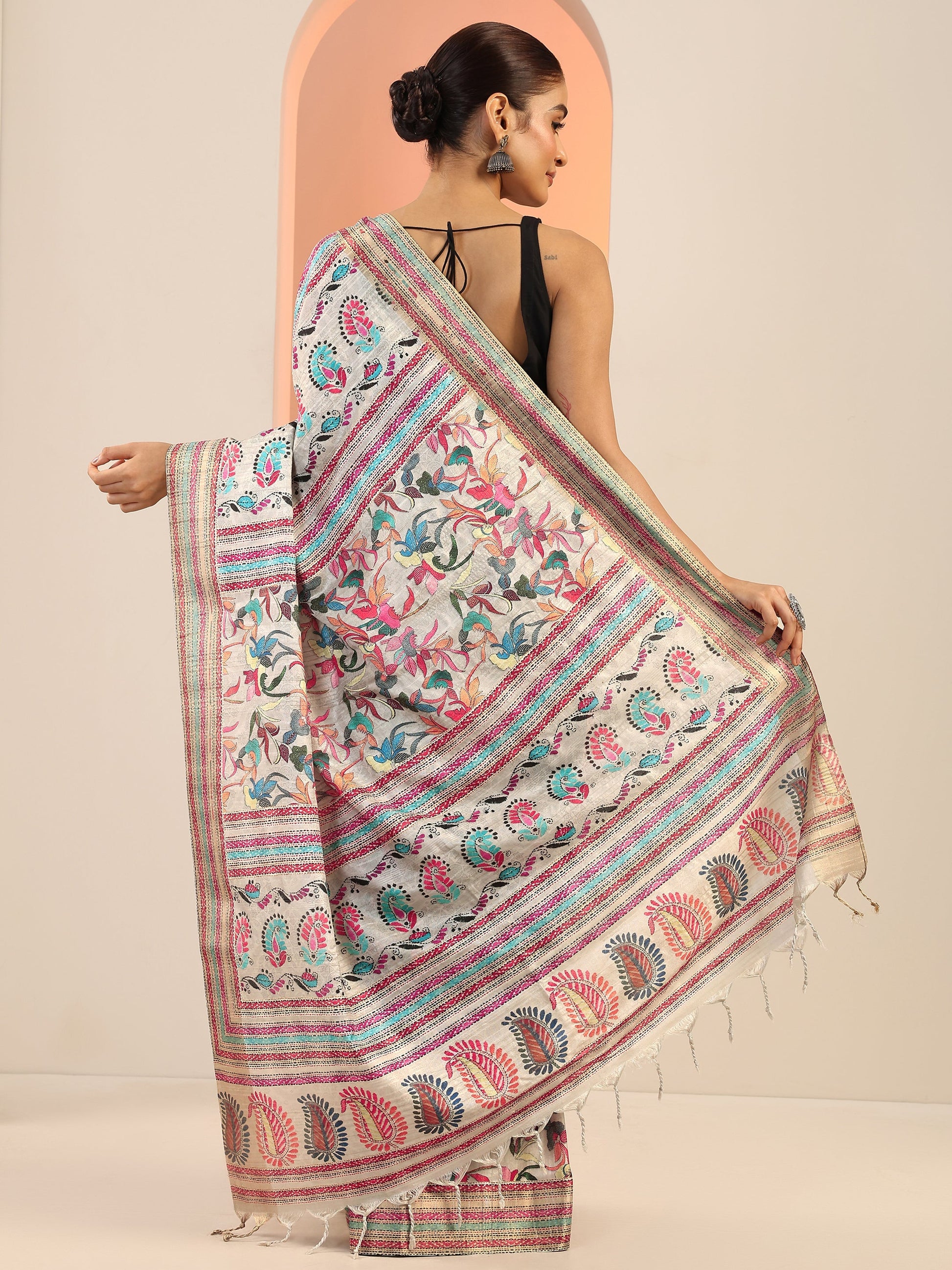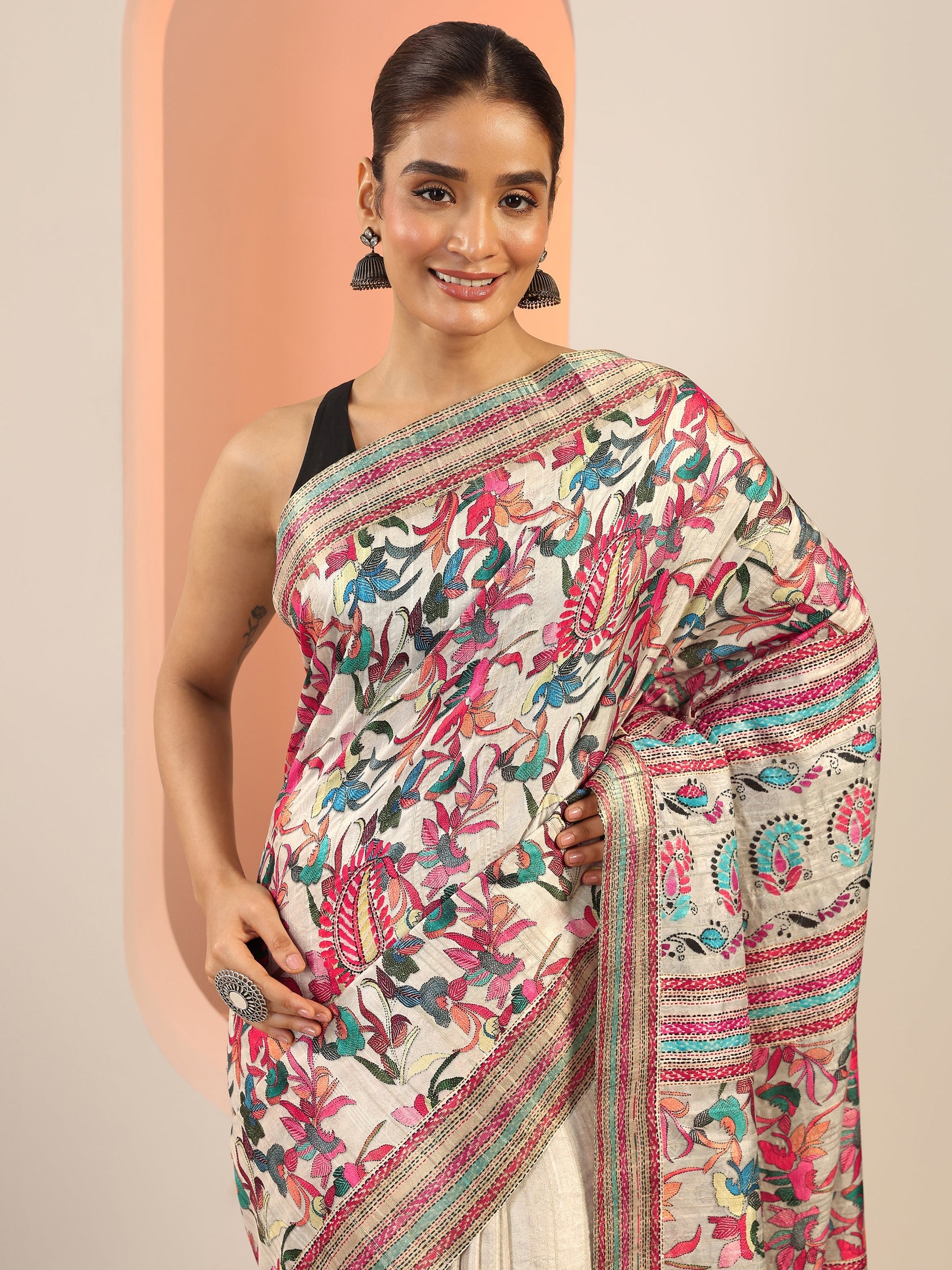 Our Multi Printed Silk Blend Saree Features Captivating Ethnic Motif Printed Design. Complemented With An Unstitched Blouse Piece. This Charming Saree Is Perfect For Festive Wear