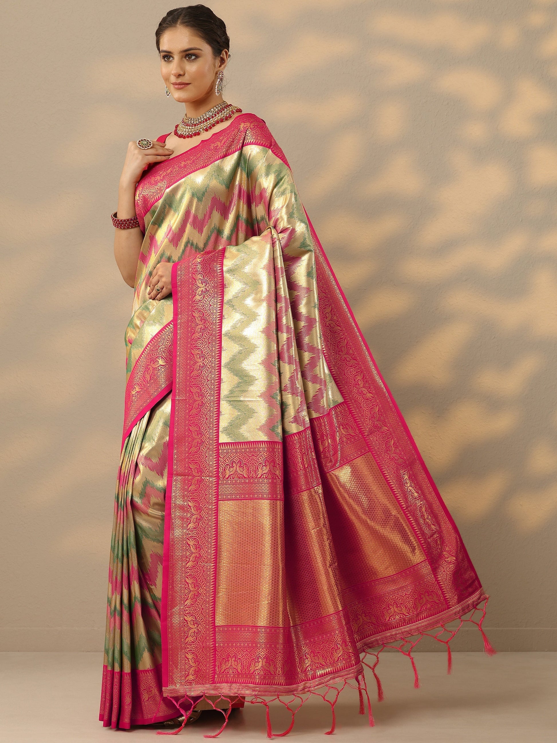 Multi Woven Design Banarasi Silk Blend Saree With Unstitched Blouse Piece