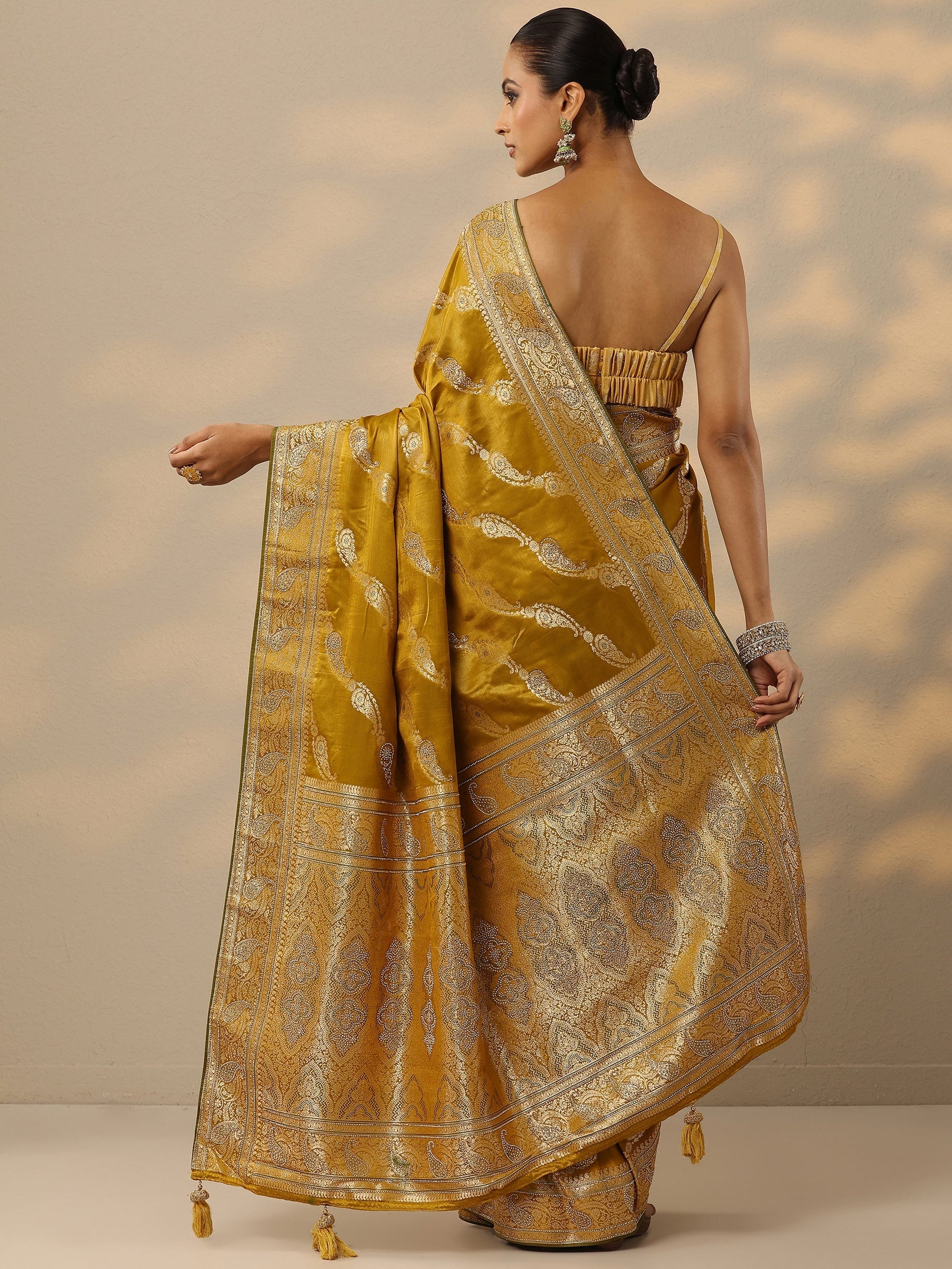 Mustard Embellished Banarasi Silk Blend Saree With Unstitched Blouse Piece