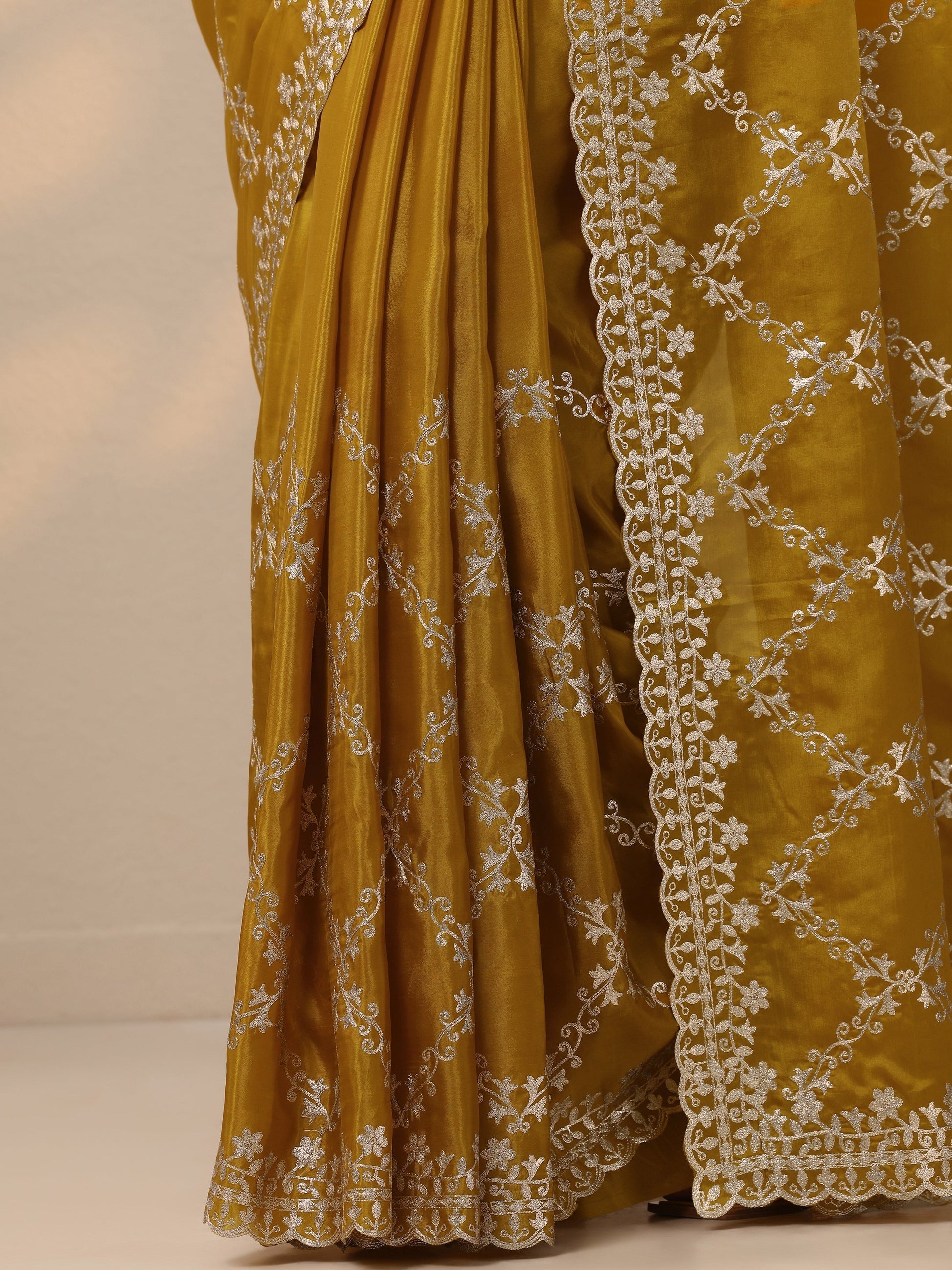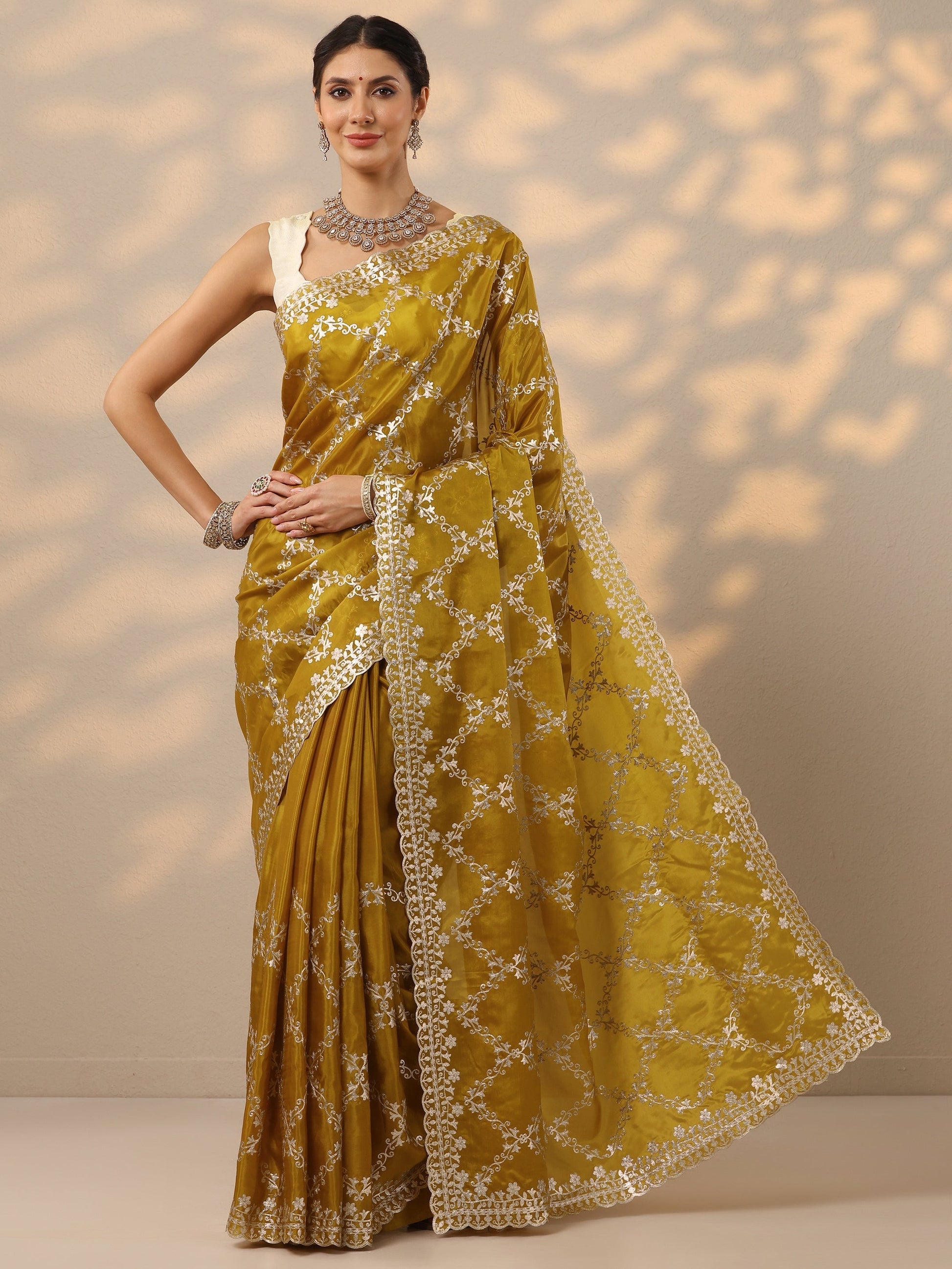 Mustard Embroidered Silk Blend Saree With Unstitched Blouse Piece