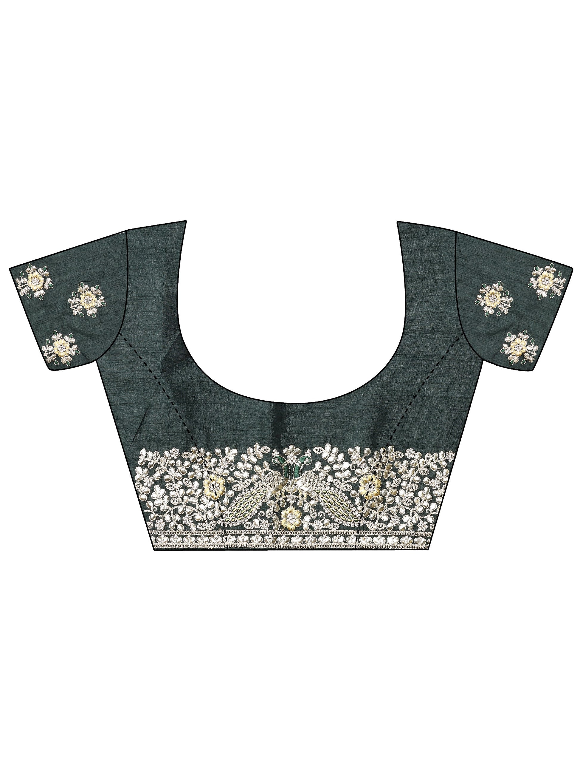 Mustard Embroidered Silk Blend Saree With Unstitched Blouse Piece