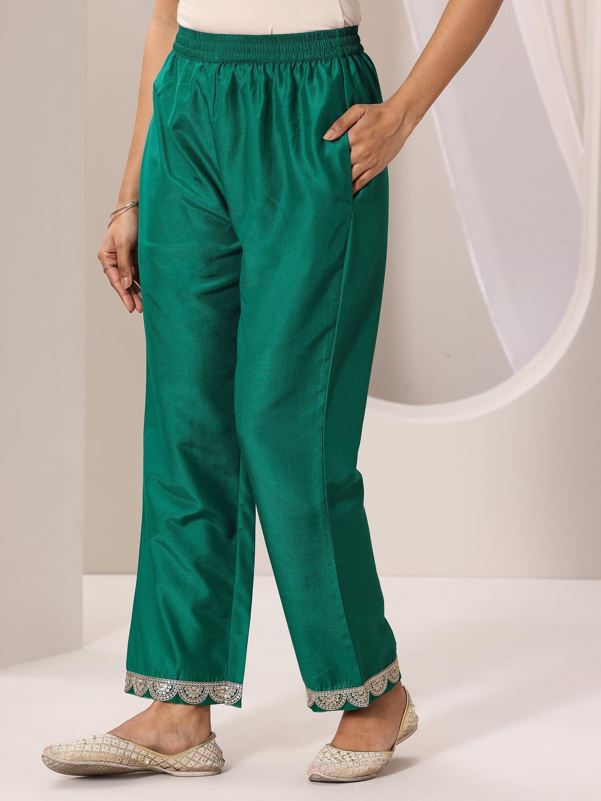 Our 3-piece mustard printed chinon straight suit set features a straight-fit kurta with a notched neckline, three-quarter sleeves, and a statement yoke. Complemented with solid green palazzos with an elasticated waistband and roomy pockets, and a matching dupatta. Adorned with Bandhani-inspired prints, stylish button accents, Gota Patti detailing, and sequin detailing, this refreshing style is perfect for festive celebrations.