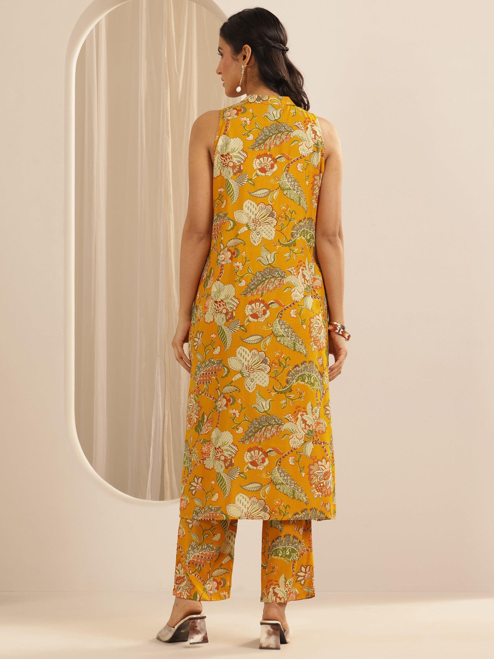 Our 2-piece mustard rayon straight-fit kurta set features a round neckline. Complemented with straight pants with a partially elasticated waistband and 2 pockets. Adorned with floral prints, this style is perfect for casual wear.