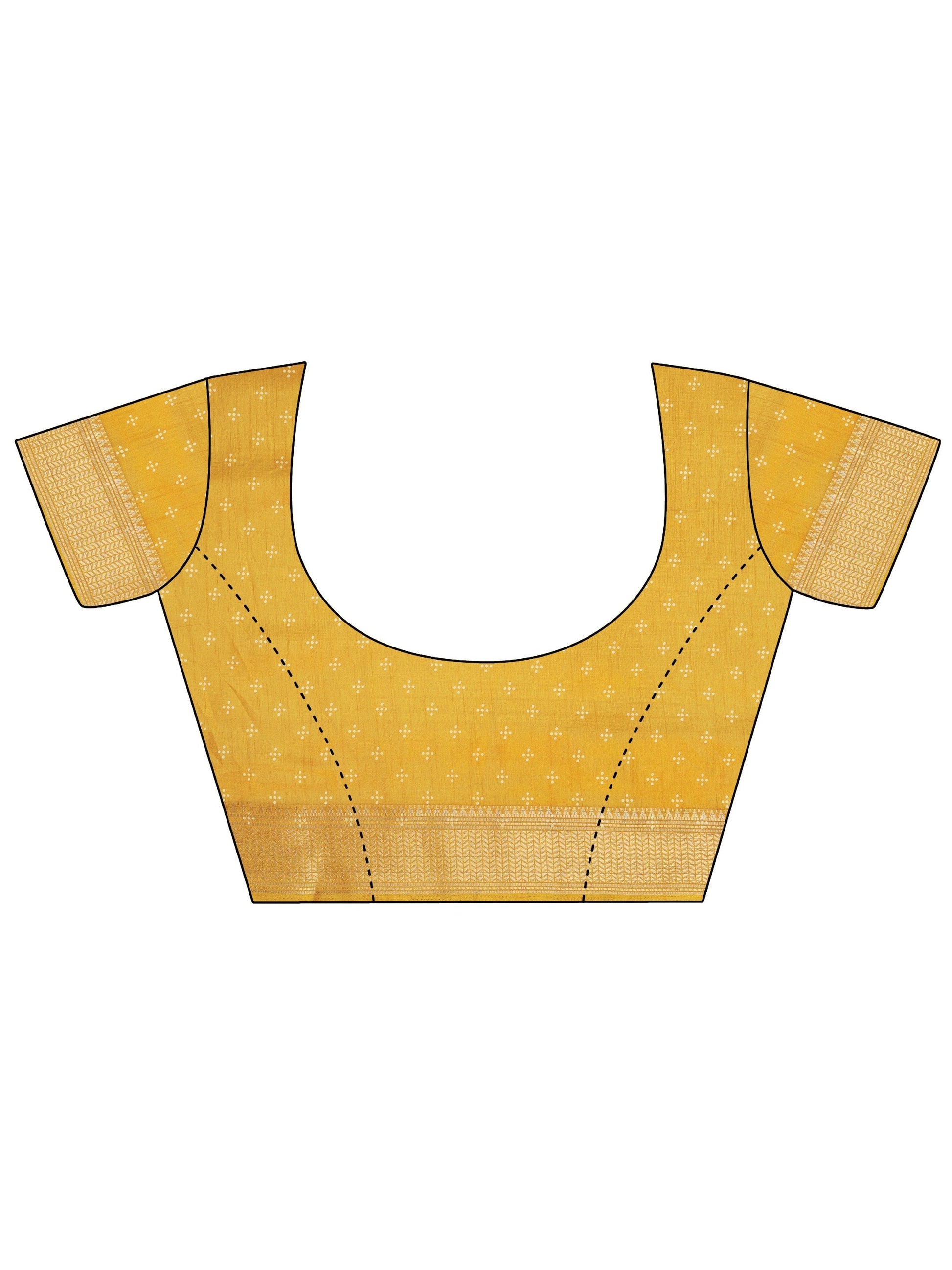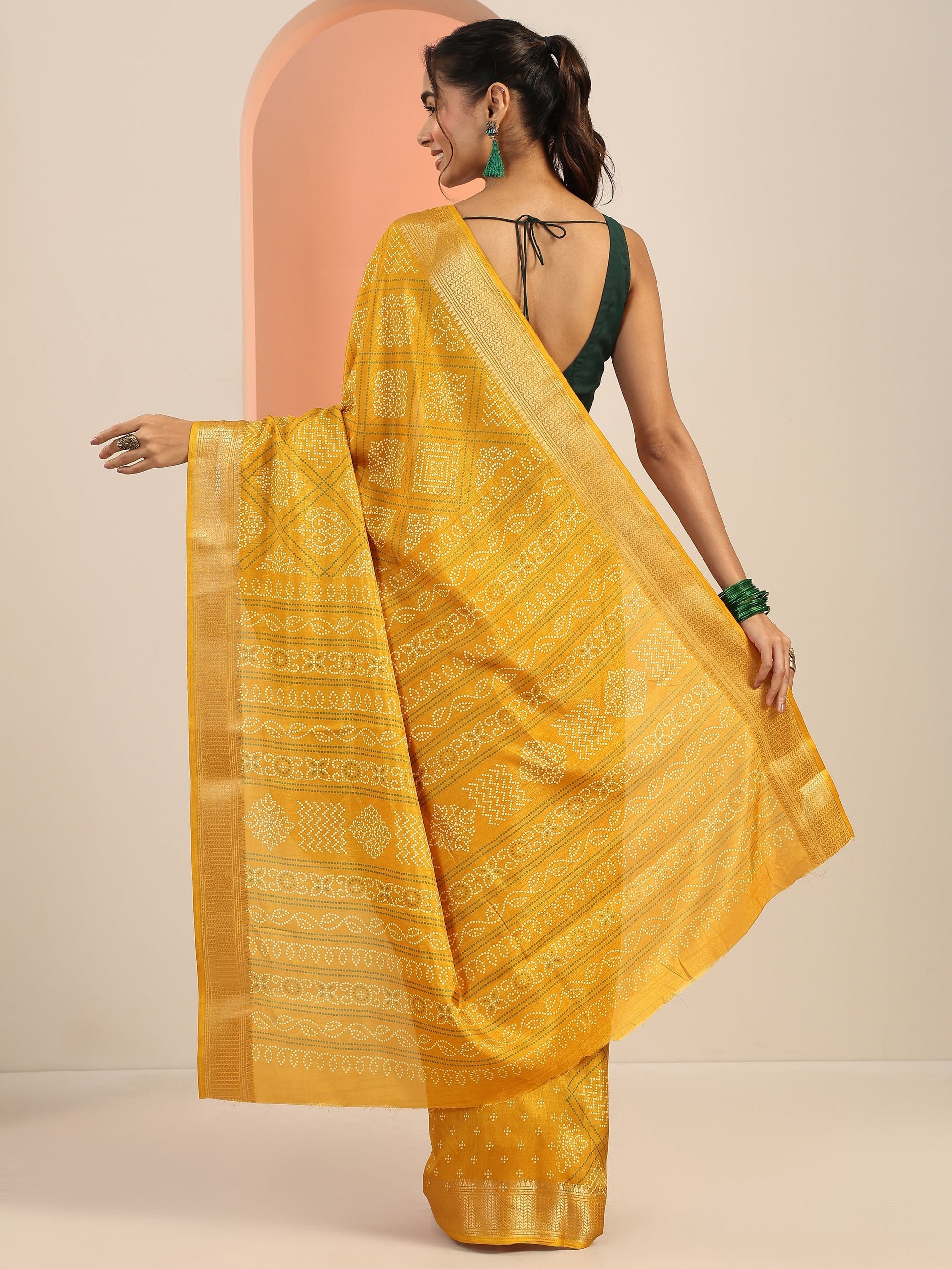 Mustard Printed Silk Blend Saree With Unstitched Blouse Piece