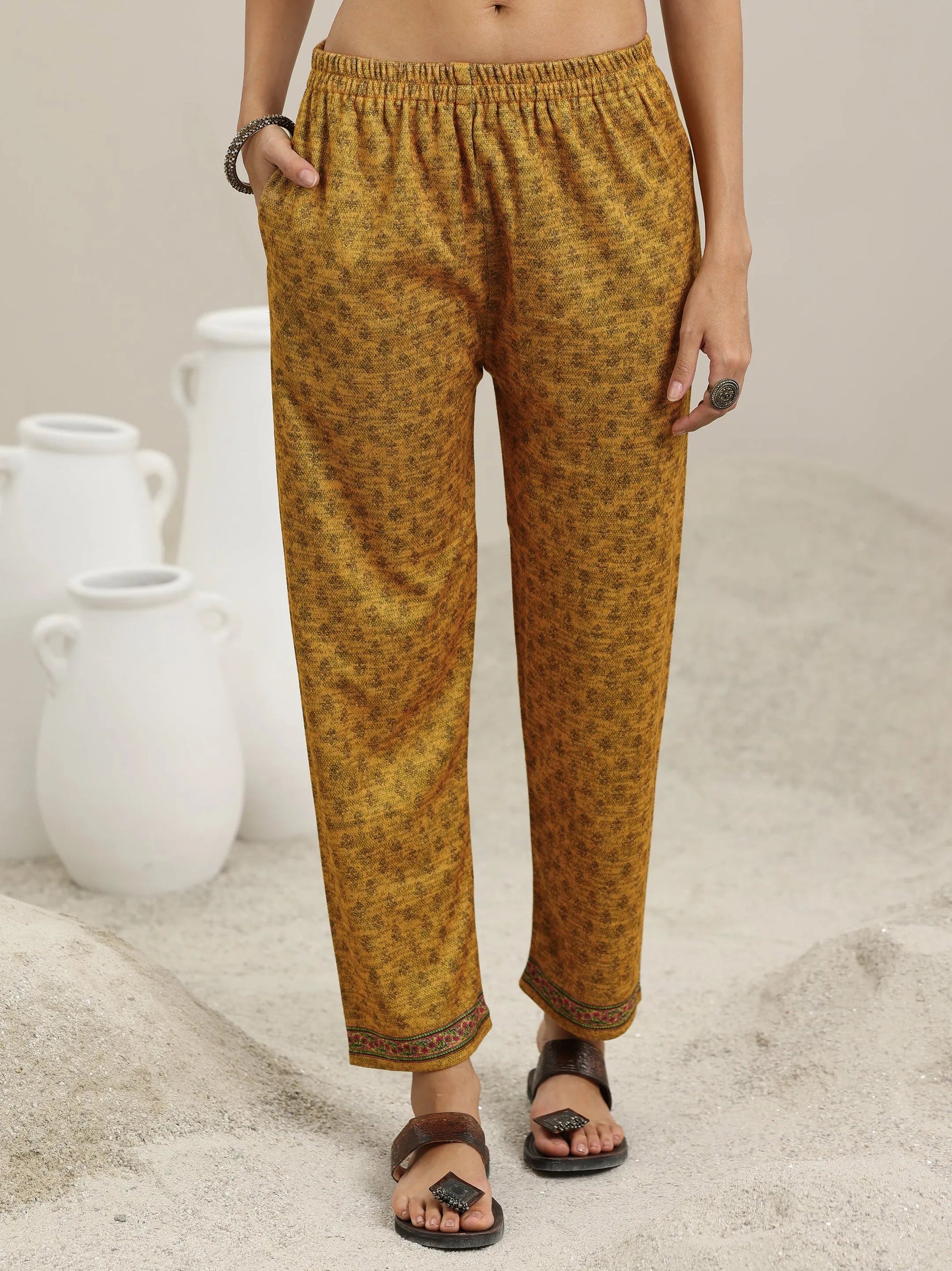 Mustard Printed Wool Blend Straight Suit With Dupatta