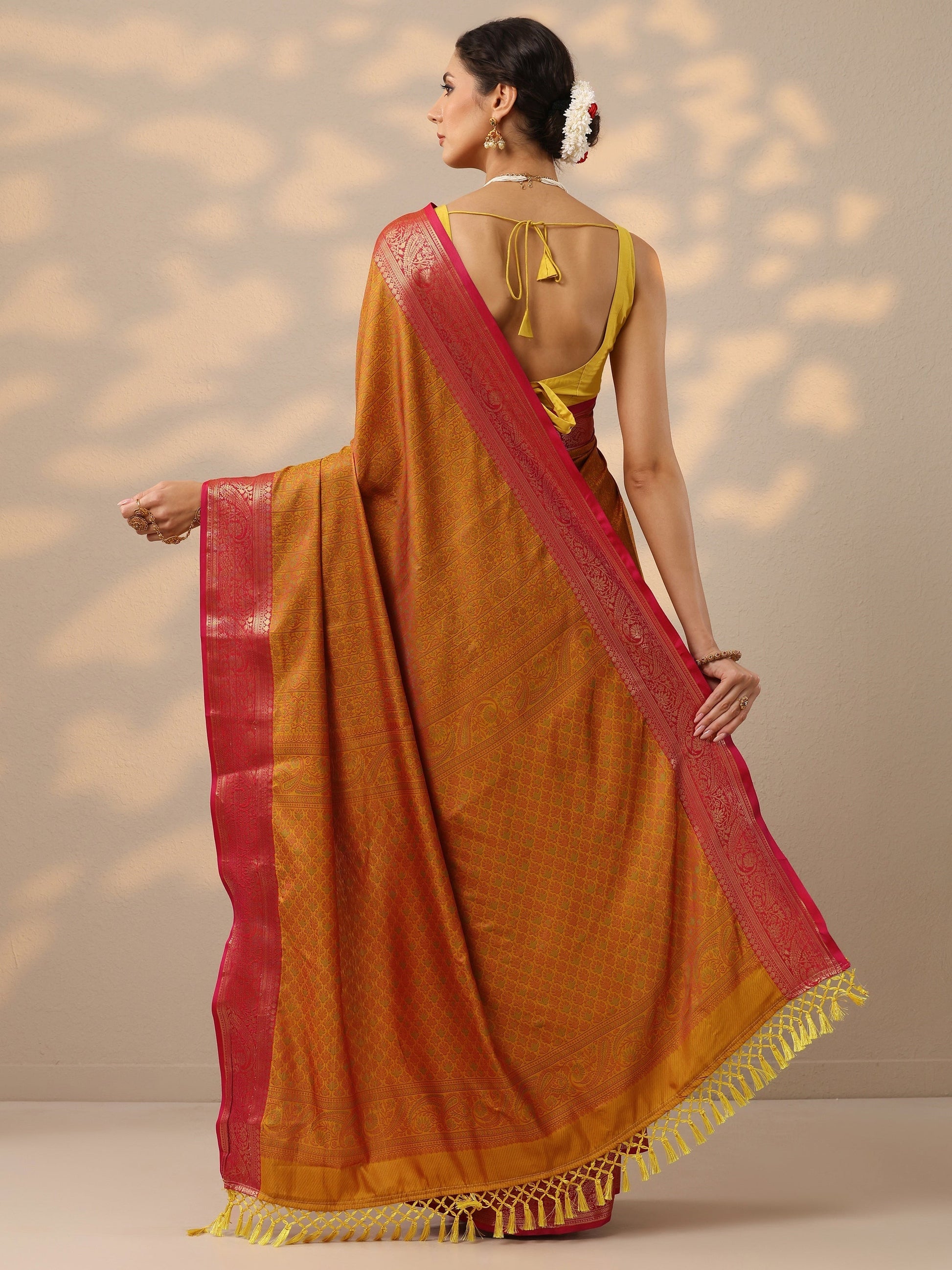 Mustard Woven Design Banarasi Silk Blend Saree With Unstitched Blouse Piece