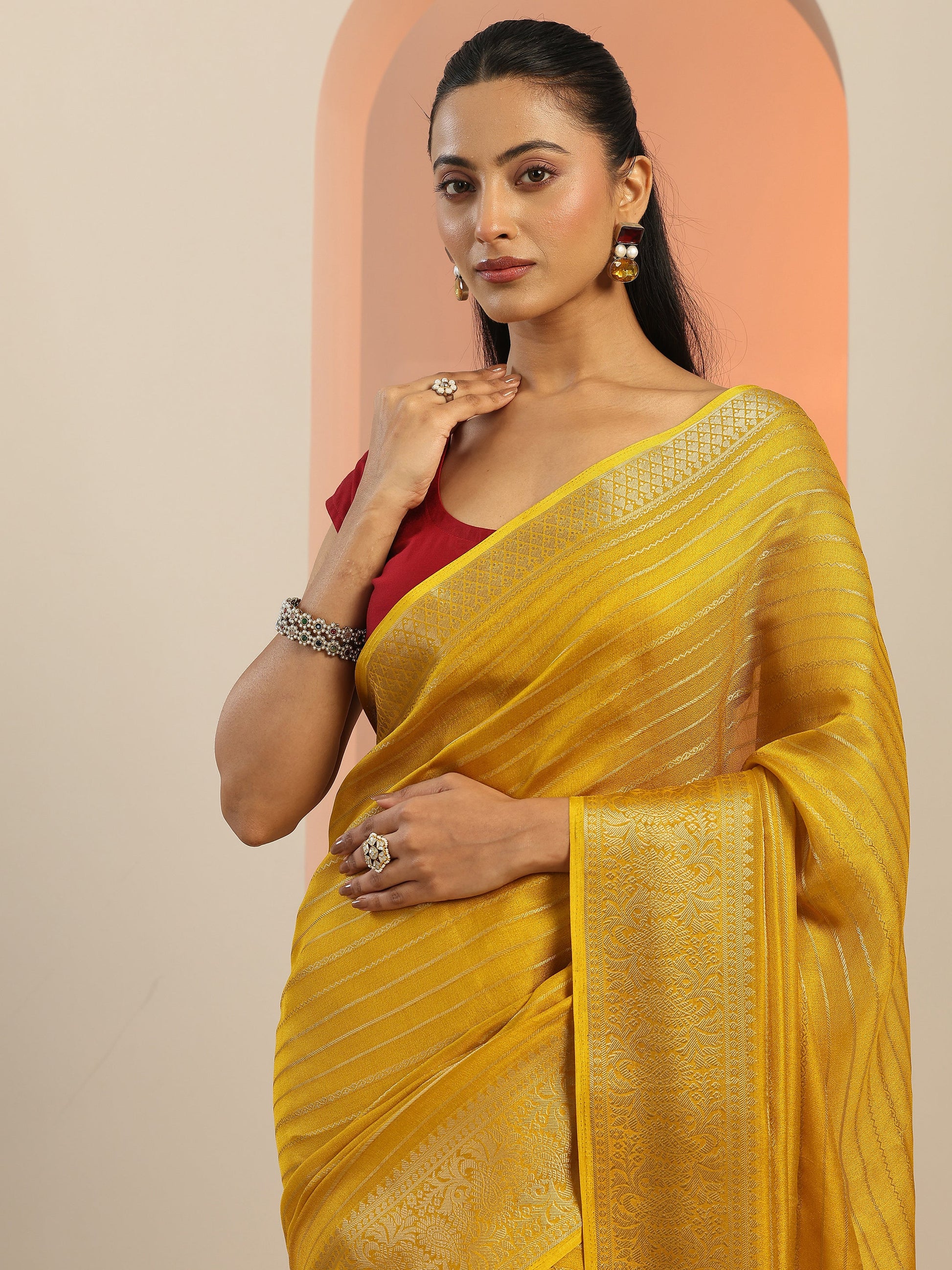 Mustard Woven Design Georgette Saree With Unstitched Blouse Piece