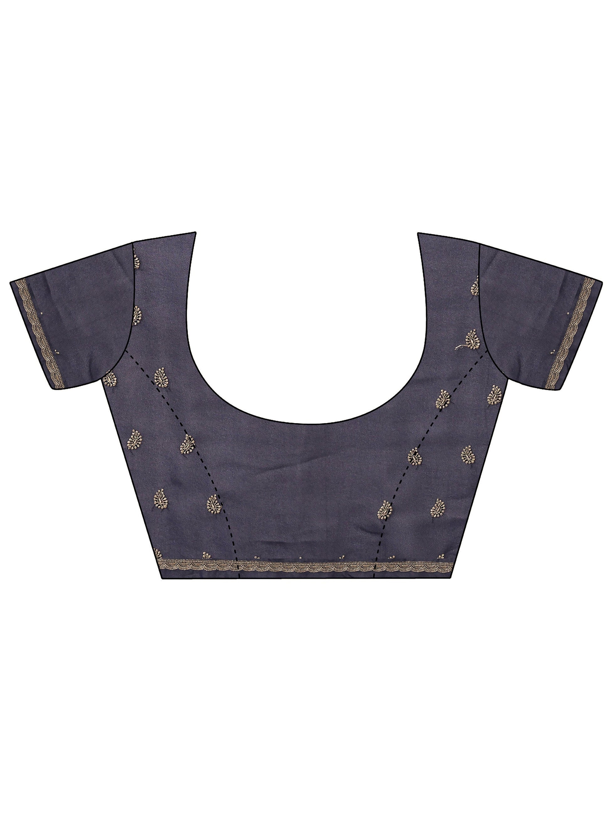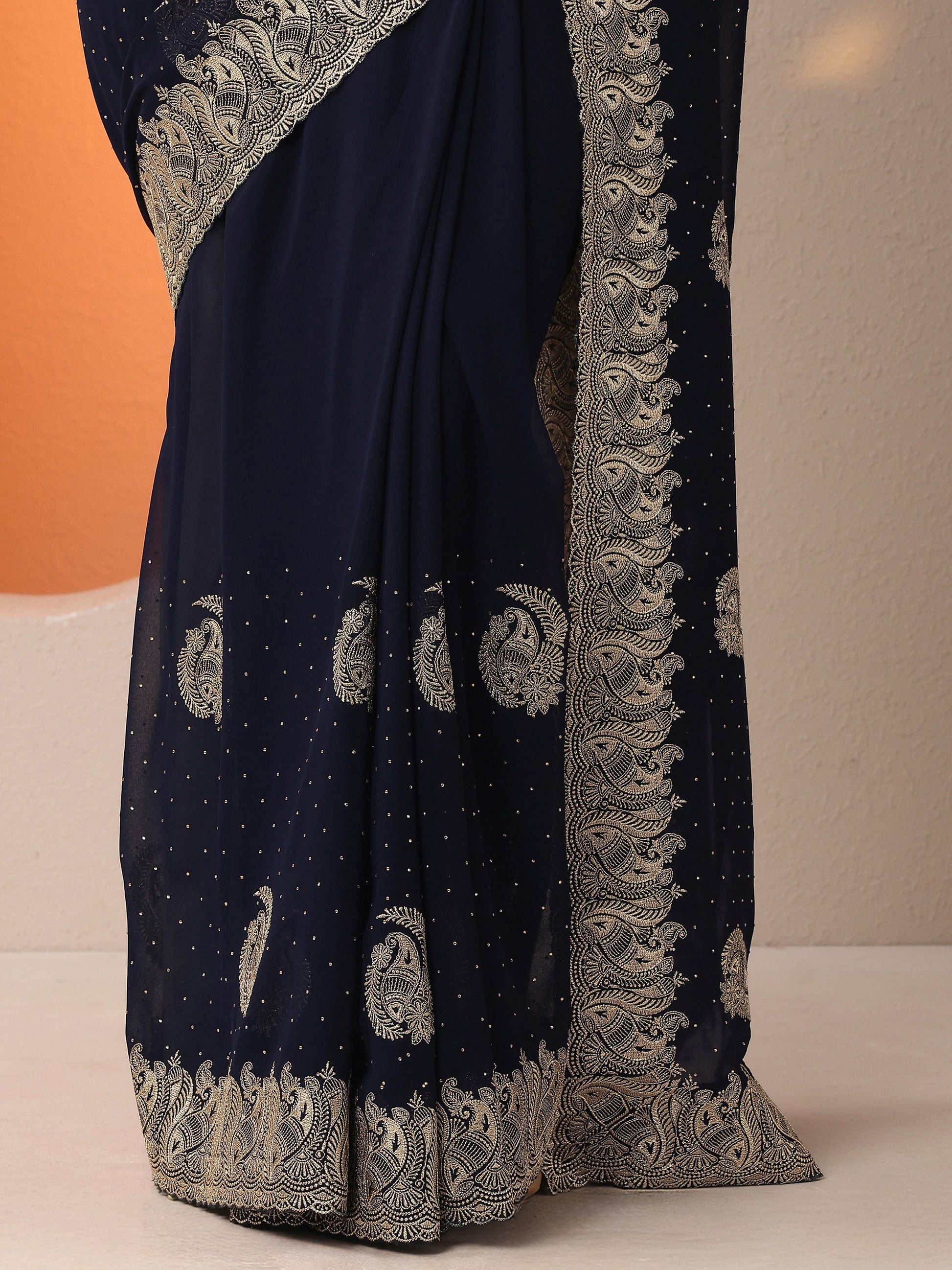 Navy Blue Embroidered Georgette Saree With Unstitched Blouse Piece