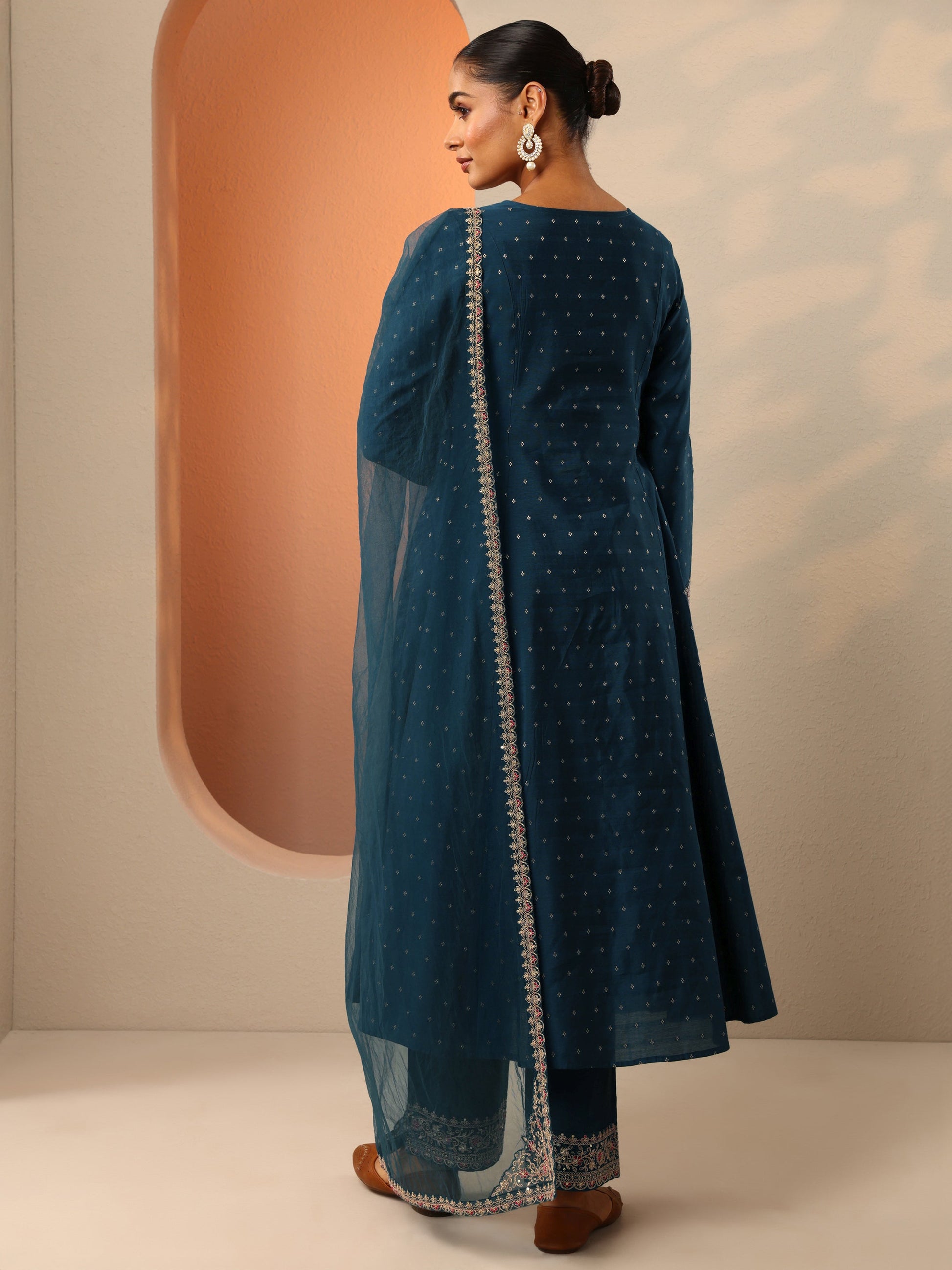 Navy Blue Embroidered Silk Blend Anarkali Suit Set With Dupatta