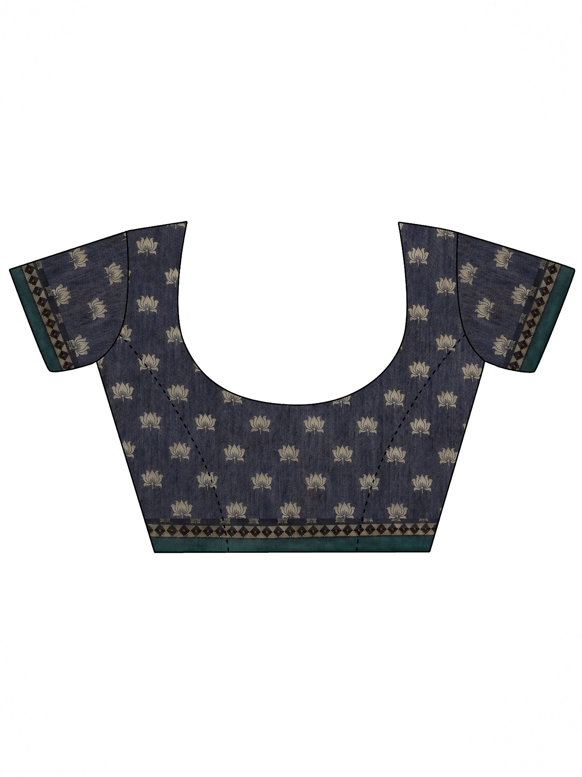 Our Navy Blue Printed Silk Blend Saree Features Captivating Embellishments. Complemented With An Unstitched Blouse Piece. This Charming Saree Is Perfect For Festive Wear.