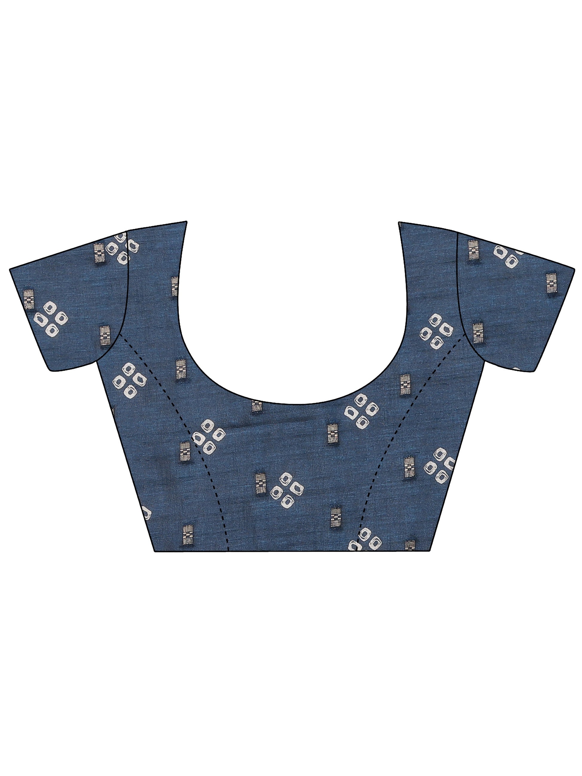 Navy Blue Printed Silk Blend Saree With Unstitched Blouse Piece