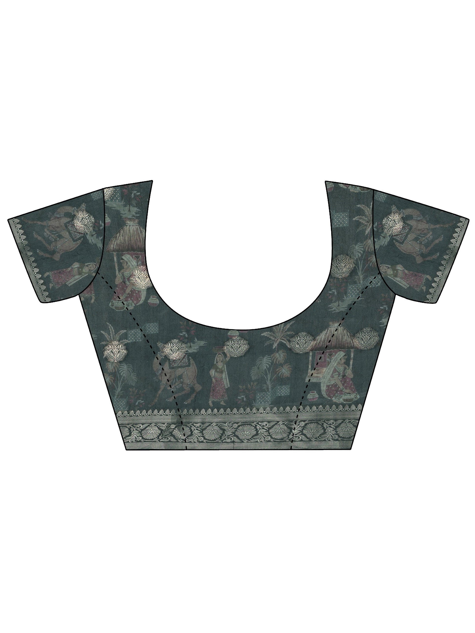 Our Navy Blue Printed Silk Blend Saree Features Captivating Tribal Printed Design. Complemented With A Unstitched Blouse Piece. This Charming Saree Is Perfect For Festive Wear.
