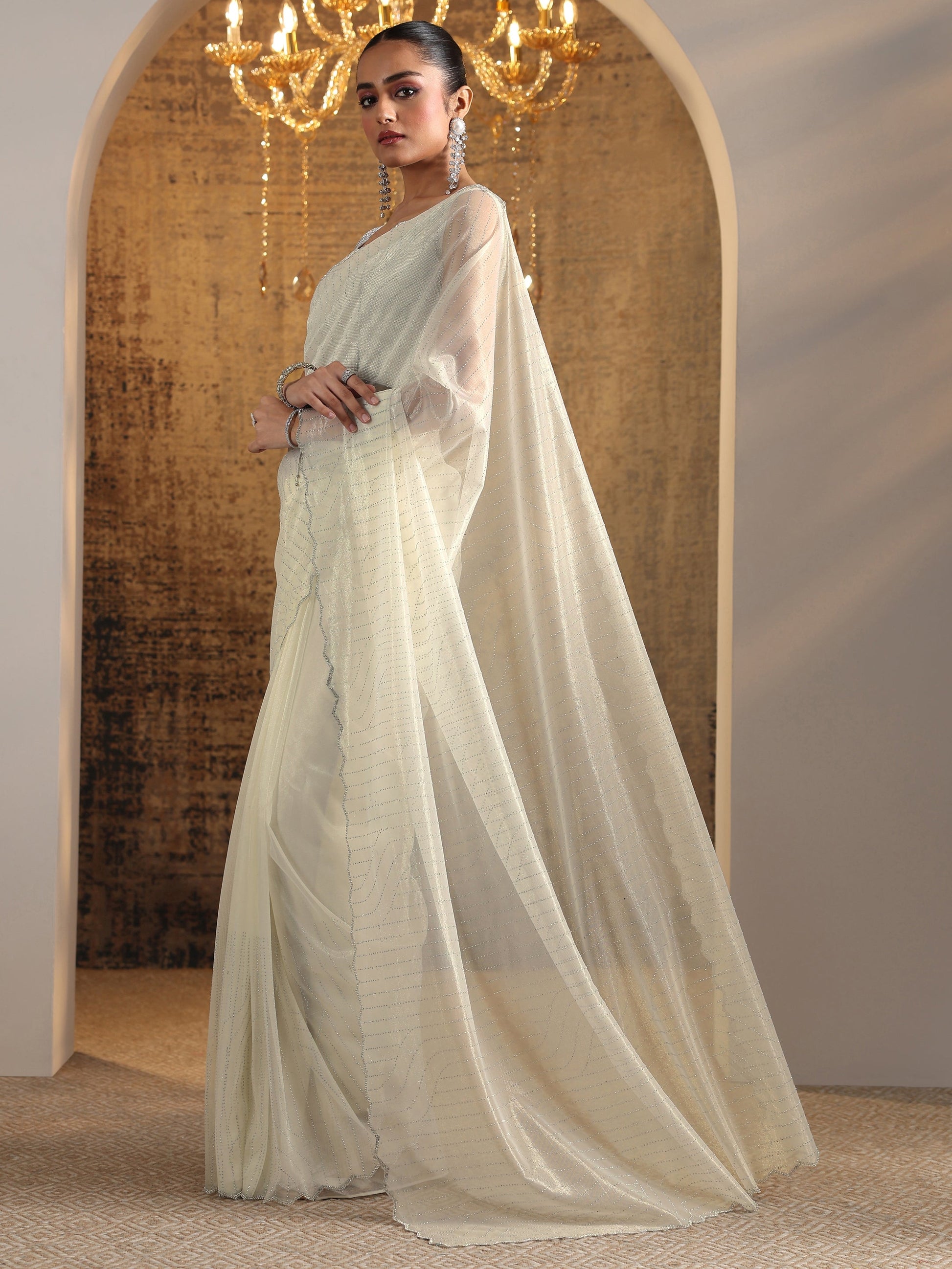 Off White Embellished Organza Saree With Unstitched Blouse Piece