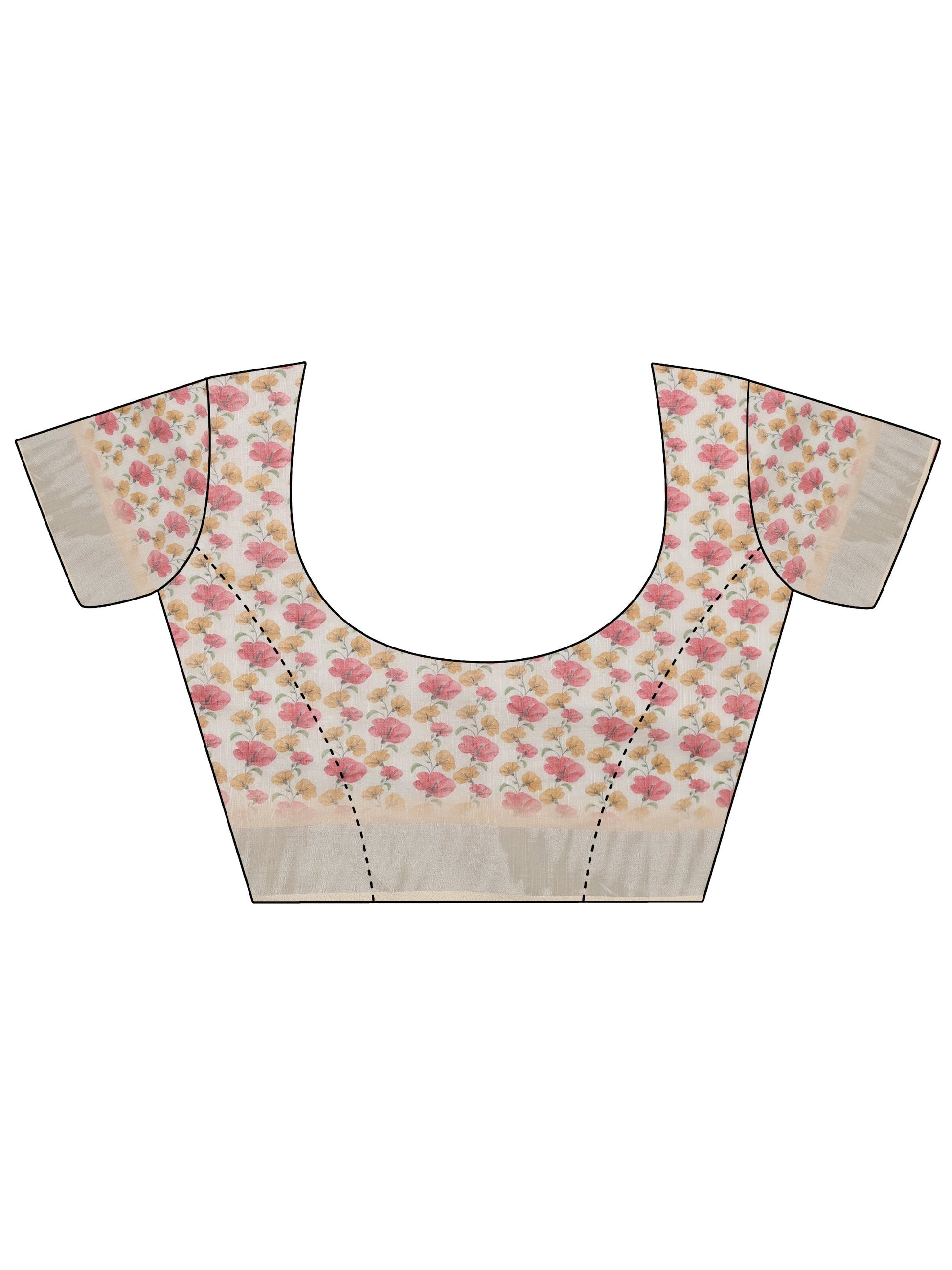 Our Off White Printed Cotton Blend Saree Features Captivating Floral Print. Complemented With An Unstitched Blouse Piece. This Charming Saree Is Perfect For Festive Wear.