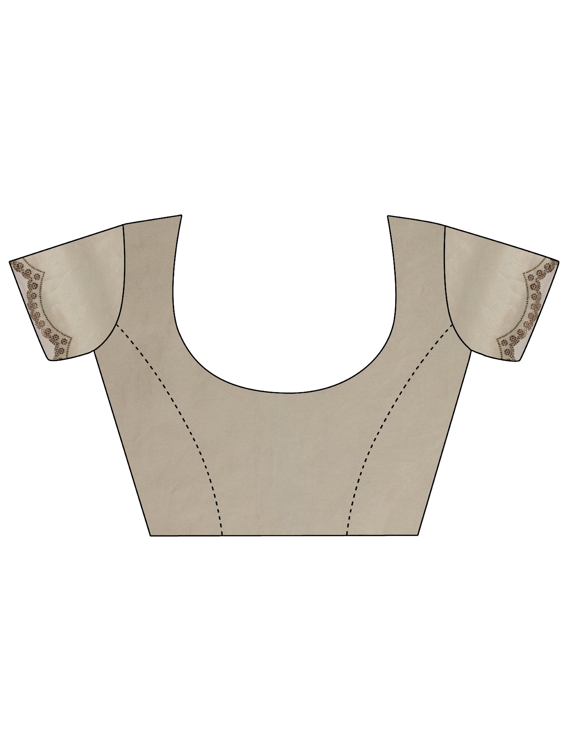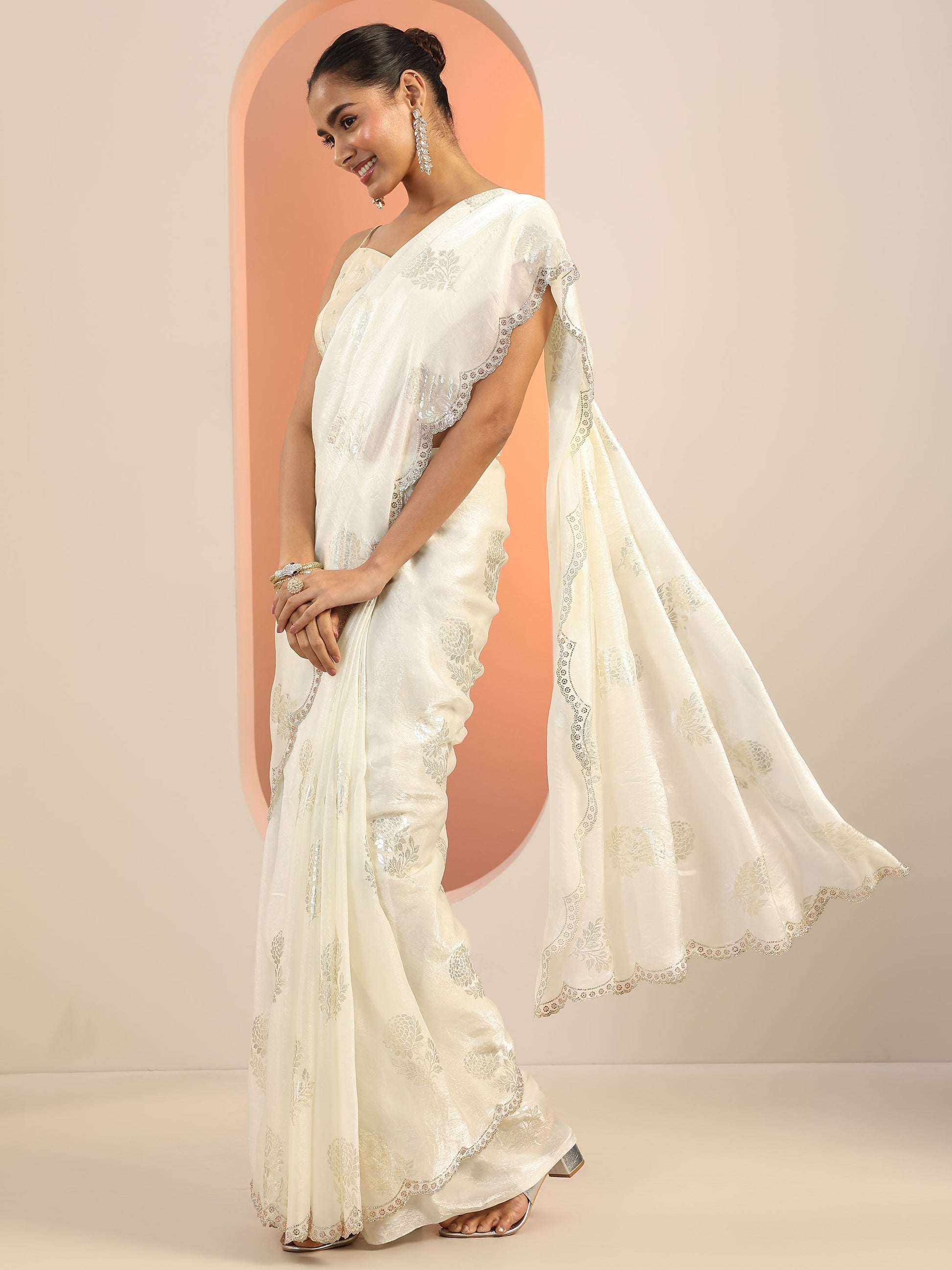 Off White Printed Satin Saree With Unstitched Blouse Piece