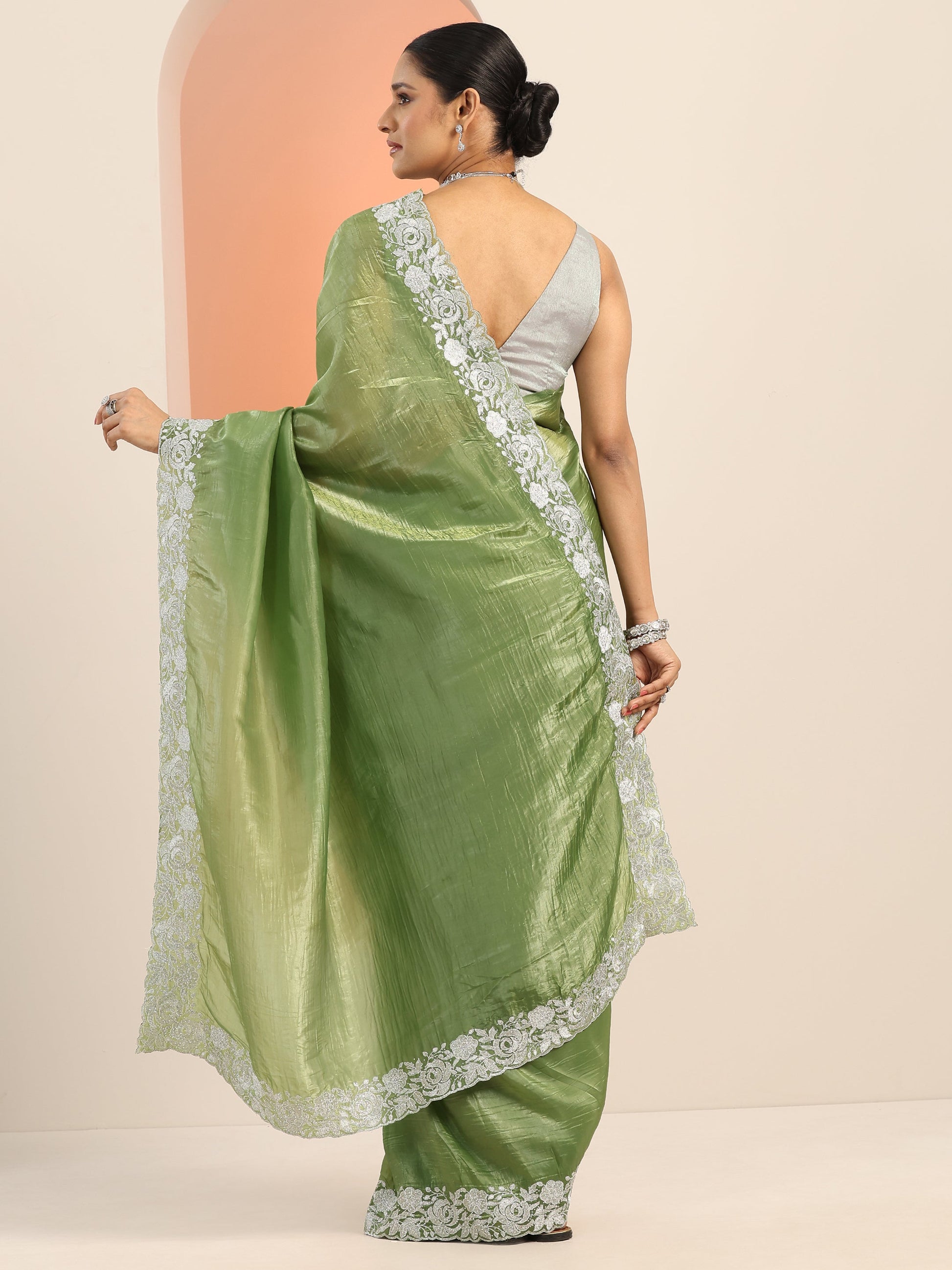 Olive Embroidered Jimmy Choo Organza Saree With Unstitched Blouse Piece