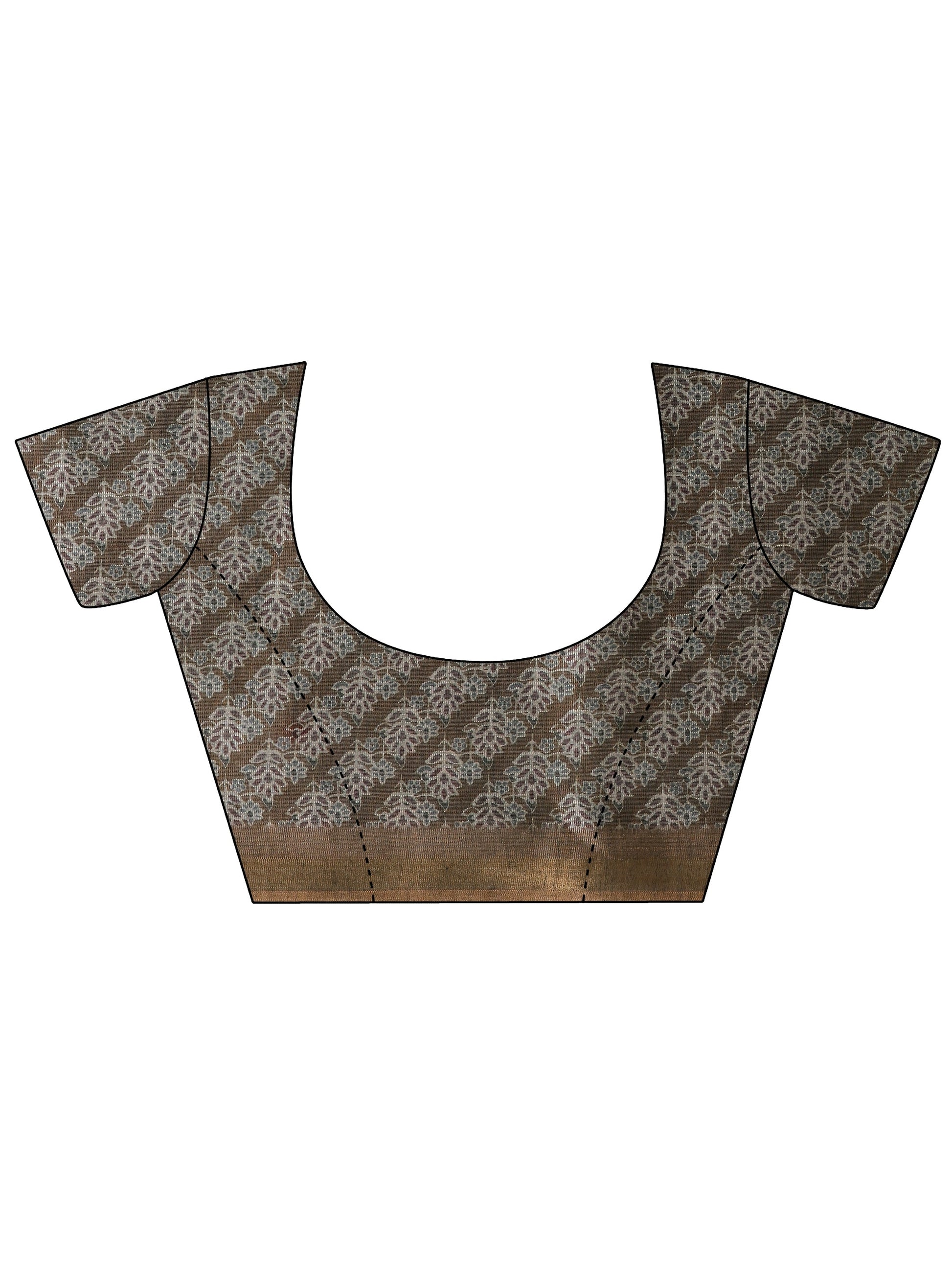 Our brown printed cotton blend saree features captivating top pattern print. Complemented with a unstitched blouse Piece. This charming saree is perfect for festive occasions