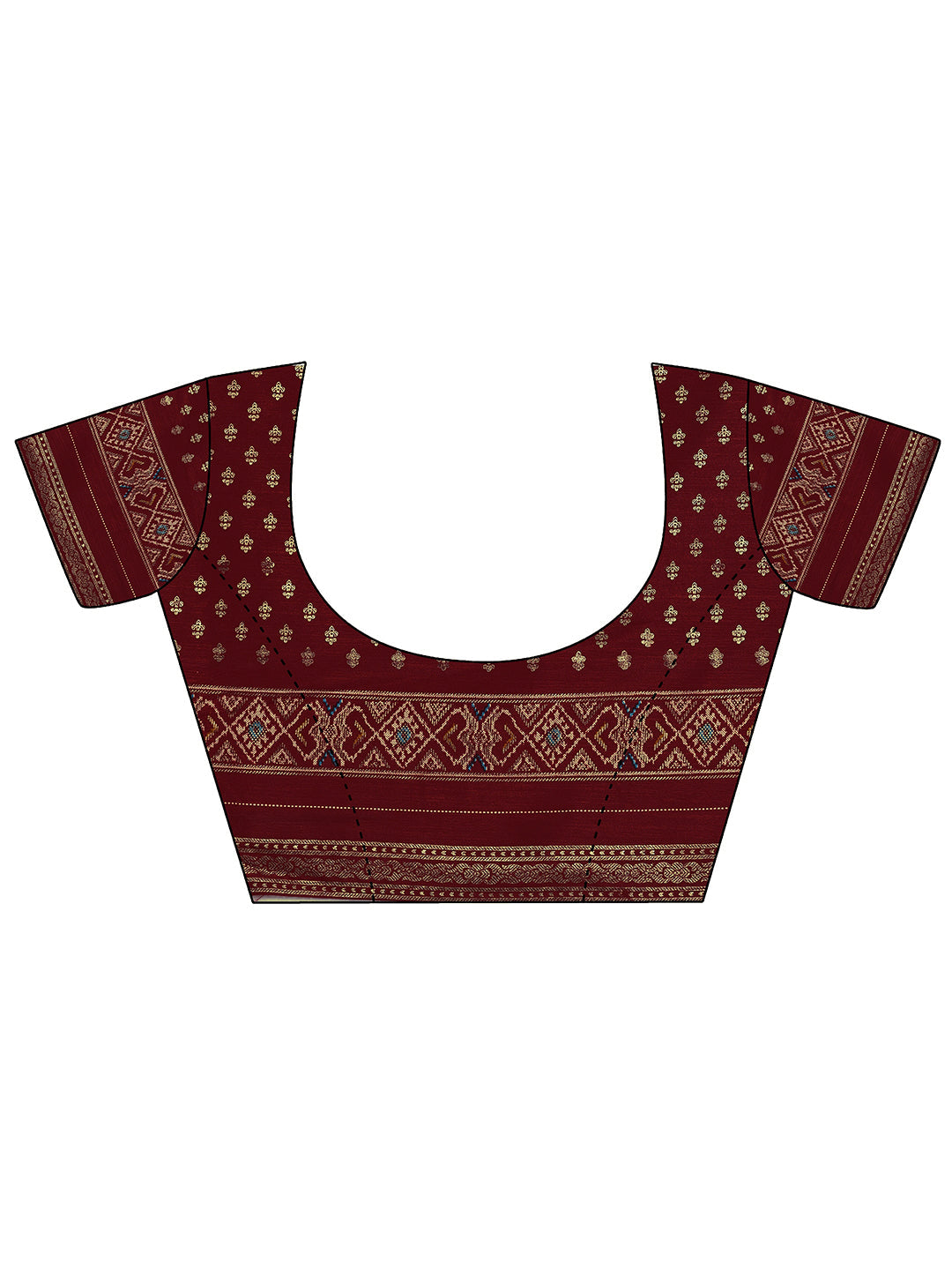 Olive Printed Silk Blend Saree With Unstitched Blouse Piece