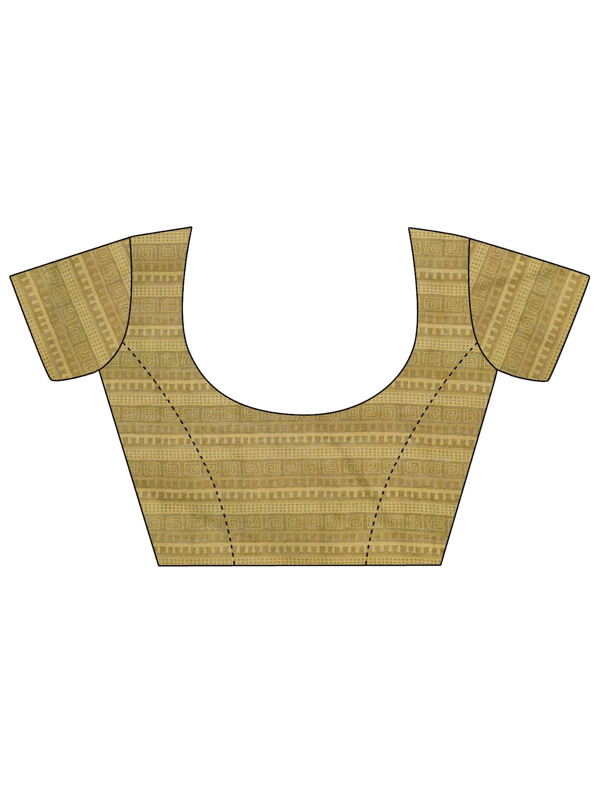 Olive Printed Silk Saree With Unstitched Blouse Piece
