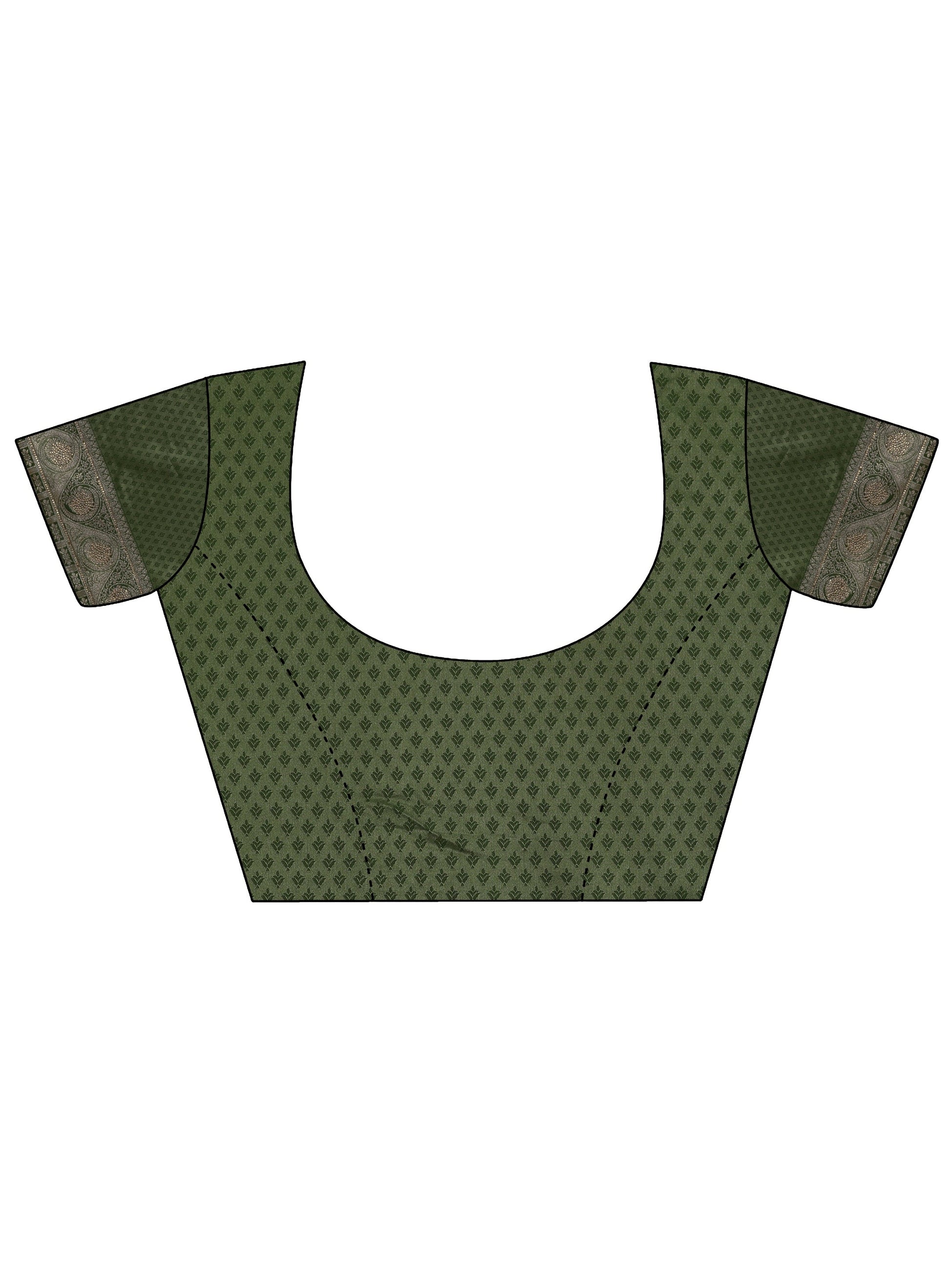 Olive Woven Design Banarasi Silk Blend Saree With Unstitched Blouse Piece