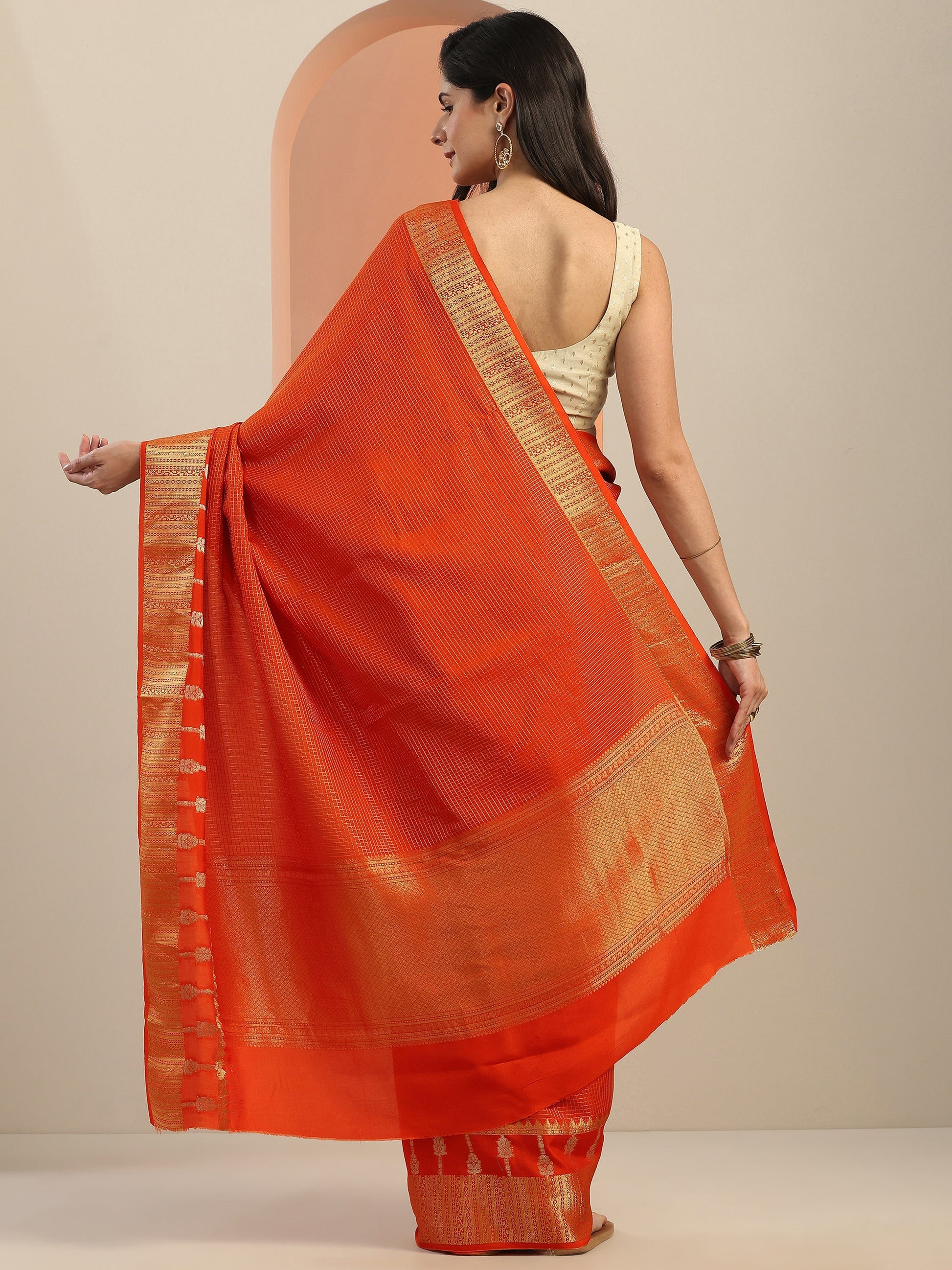 Orange Embellished Silk Blend Saree With Unstitched Blouse Piece