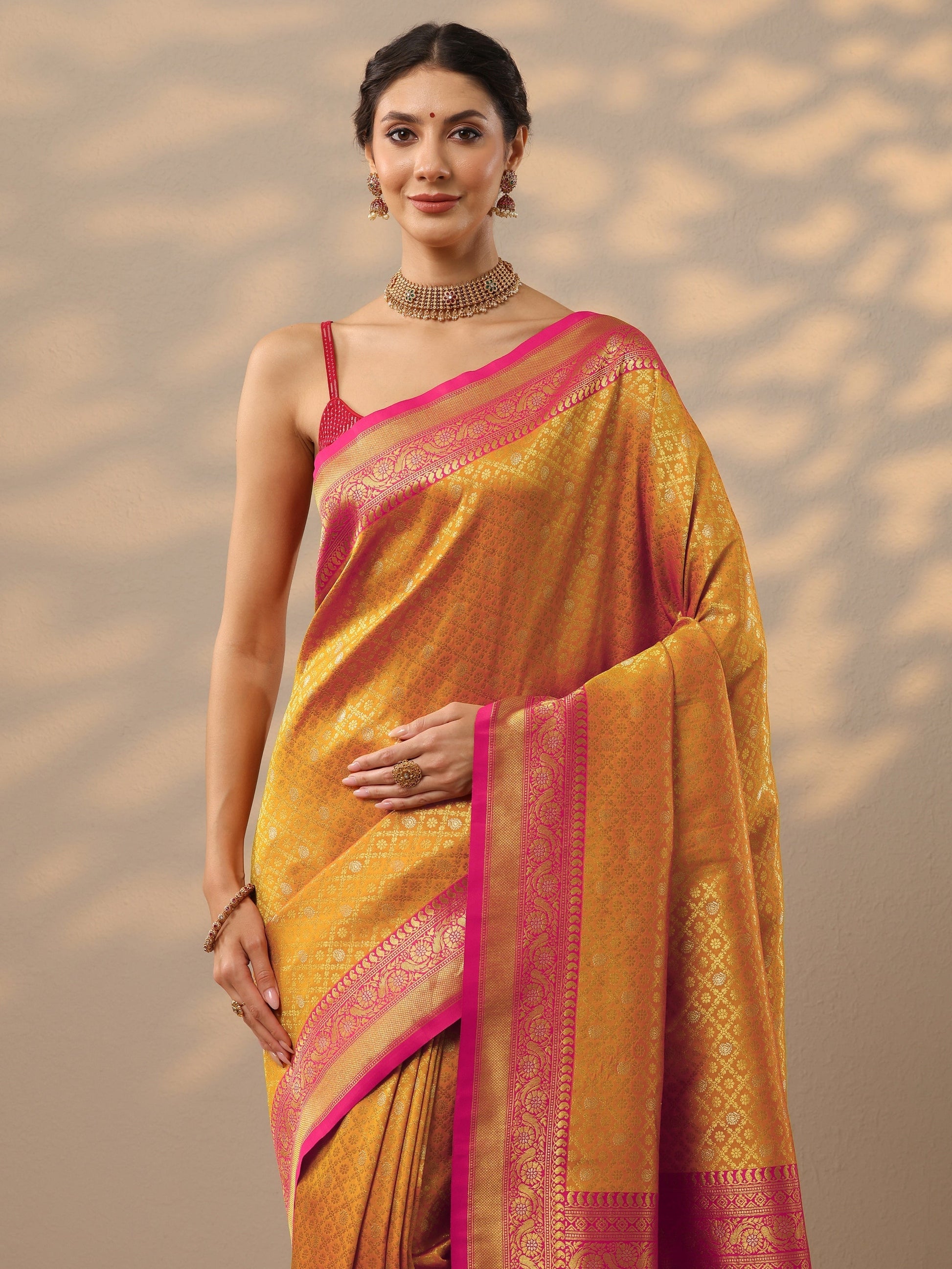 Orange Woven Design Banarasi Silk Blend Saree With Unstitched Blouse Piece