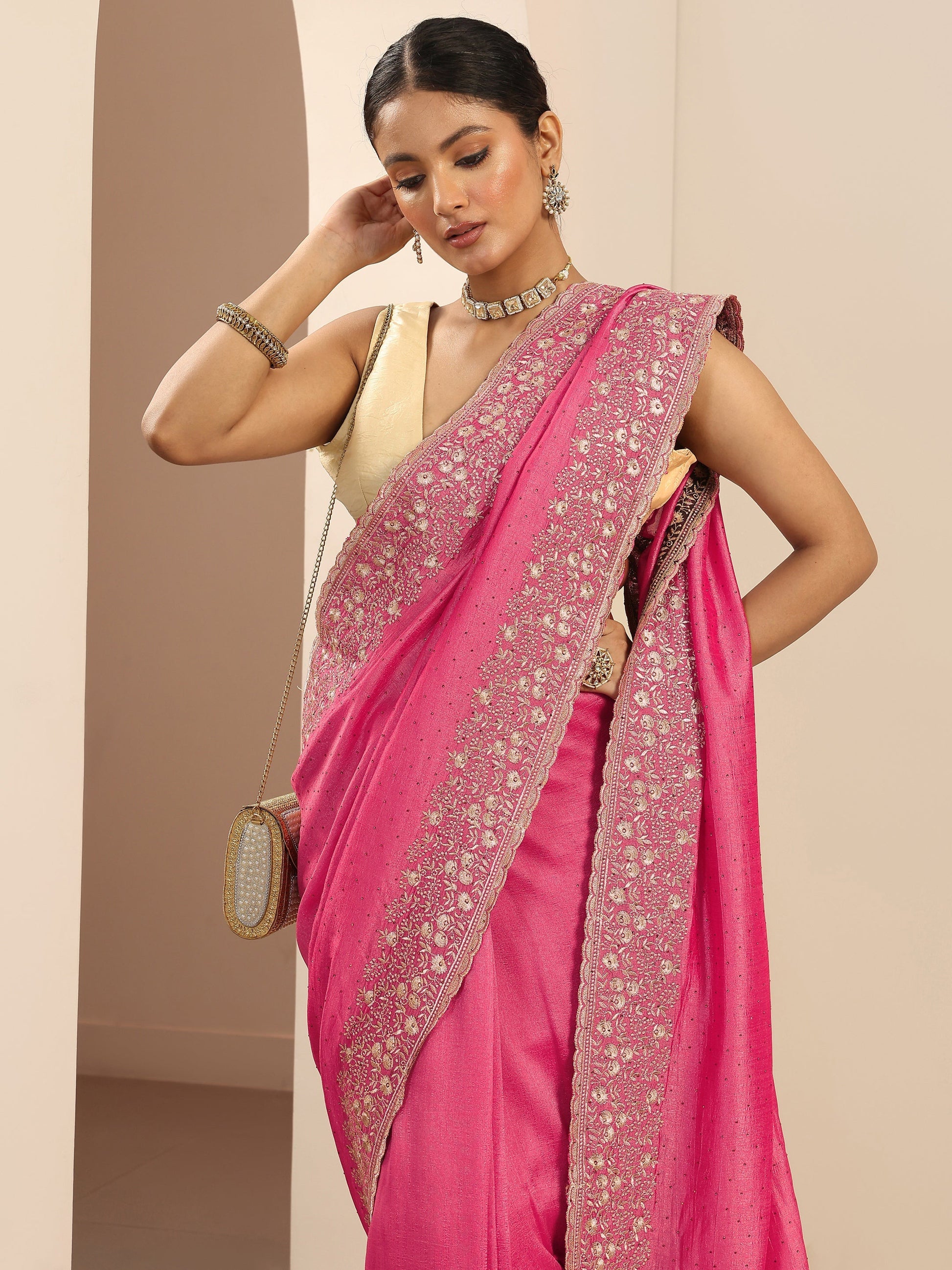 Peach Embellished Silk Blend Saree With Unstitched Blouse Piece