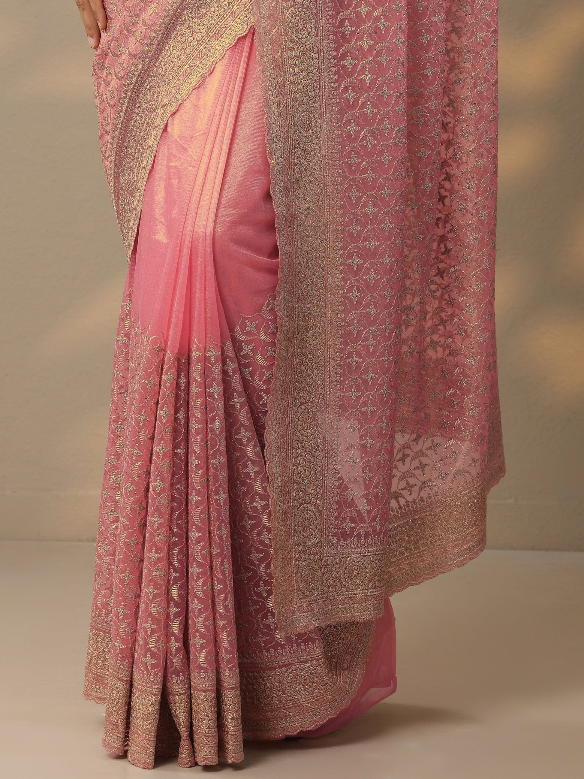 Our Pink Printed Nylon Saree Features Captivating Embellishments. Complemented With An Unstitched Blouse Piece. This Charming Saree Is Perfect For Festive Occasions